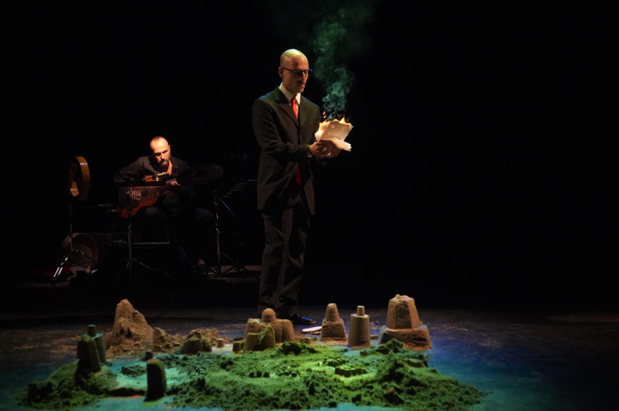 Una lavagna, dei gessetti, la sabbia, un cavalluccio rosso. Sulle tracce di una tragedia perduta, un investigatore compie un’indagine per metterne insieme i pezzi, fare luce sui vuoti, ricostruirne la vicenda e i personaggi. Il testo di partenza è «Aléxandros», opera di Euripide che ci è giunta incompleta, sorta di “prequel” della guerra di Troia. E chi sarà mai questo Alessandro? Un semplice pastore, forse, eppure molto di più: il protagonista di un mito profondo e affascinante, esplorato ripetutamente dagli autori antichi, ma quasi del tutto ignorato oggi. Un ottimo pretesto per un vero e proprio giallo. La drammaturgia si serve allora dei frammenti della tragedia euripidea, passando liberamente dalla ricomposizione all’invenzione. Lo spettacolo si serve invece delle scorie delle devastazioni: la distruzione di Troia, l’incendio della biblioteca di Alessandria, la perdita dell’infanzia. Un mondo del passato che tenta di riprendere vita col suono di un racconto, con una voce che canta in greco, con le note degli strumenti che suonano dal vivo.