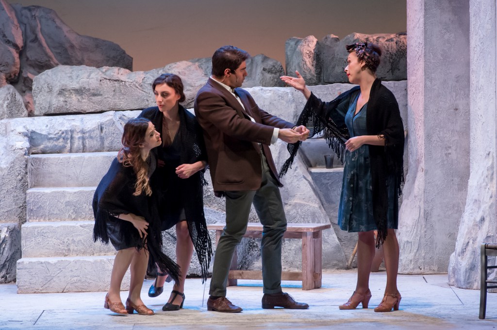 Liolà è una commedia d’ambiente siciliano che trae spunto dal quarto capitolo del “Fu Mattia Pascal” e dalla novella “La mosca”. In questa edizione abbiamo scelto di collocare il periodo storico a cavallo dei primi anni ’40, mentre il contesto scenografico ci riporta al borgo marinaro di Porto Empedocle, con le costruzioni di un bianco accecante che le incastona perfettamente nel paesaggio della Scala dei Turchi, adiacente la casa natia di Pirandello. Questo espediente consente una ricollocazione oltre che di luogo, anche delle caratteristiche dei personaggi: Liolà è un don Giovanni senza morale che, con il suo comportamento, scombussola l’apparentemente morigerata società in cui si muove. Zio Simone Palumbo diventa un commerciante di zolfo che governa le attività economiche del borgo, tentando di camuffare con le ricchezze, la sua impotenza. Accanto a lui si muove uno spaccato di società dove, attraverso intrighi e vendette incrociate, domina la brama di benessere materiale che pervade gli altri personaggi. In particolare Zia Croce e sua figliaTuzza, ma dalla quale non è immune la stessa Mita, che ha accettato, spronata da sua Zia Gesa, di sposare il ricco Zio Simone, per acquisire una solida posizione sociale. Se è vero che la gioia di vivere, la spensieratezza della commedia, prevalgono su qualsiasi tipo di complicazione intellettualistica, qui Liolà, il trasgressore delle regole, è l’unico personaggio positivo, mentre gli altri sono interessati, egoisti e gretti. Ma un senso di giustizia lo induce a infrangere le regole della moralità comune spontaneamente, senza rendersene conto. Questa commedia fa ridere, ma non è gioconda, è allegra con cattiveria a spese di tutti. Nel testo si sente sempre la presenza di un ingegno creatore che ha quasi la tristezza dell’opera che immagina e una superiore ironica pietà dei personaggi che egli fa ridere.Come disse Antonio Gramsci “Liolàè il prodotto migliore dell’energia letteraria di Luigi Pirandello, è una commedia che si riattacca ai drammi satireschi della Grecia antica, Mattia Pascal, il melanconico essere moderno, vi diventa Liolà, l’uomo della vita pagana, pieno di robustezza morale e fisica”.