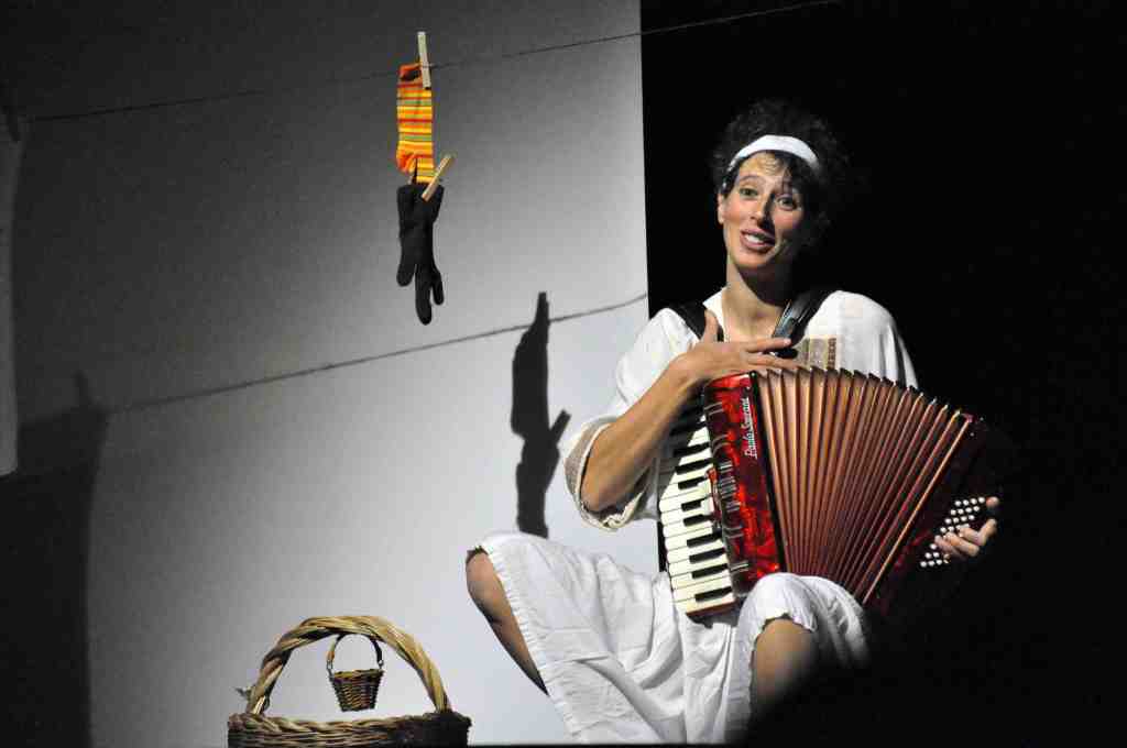 Dalle suggestioni delle “Fiabe Italiane” raccolte da Italo Calvino una narrazione scoppiettante e coinvolgente: in scena una fisarmonica, un cestino, una piccola sedia e un’attrice che stende calzini spaiati.