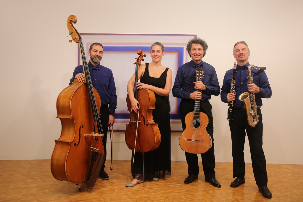 Cuartet è un originale ensemble che intende proporre in una nuova dimensione timbrica la musica brasiliana e argentina del Novecento, con l’intento di valorizzare l’aspetto più colto di autori come Villa Lobos, Gnattali, Jobim, Gismonti, Pixinguinha e di proporre gli aspetti meno noti della musica di Piazzolla e Guastavino. La differente estrazione dei musicisti regala al repertorio una visione davvero originale: la proposta di Cuartet ha riscosso grandi consensi presso i pubblici più diversi di svariati paesi europei. I loro cd “Brasilar” e “Piazzolla nascosto” hanno avuto un grande successo di pubblico.