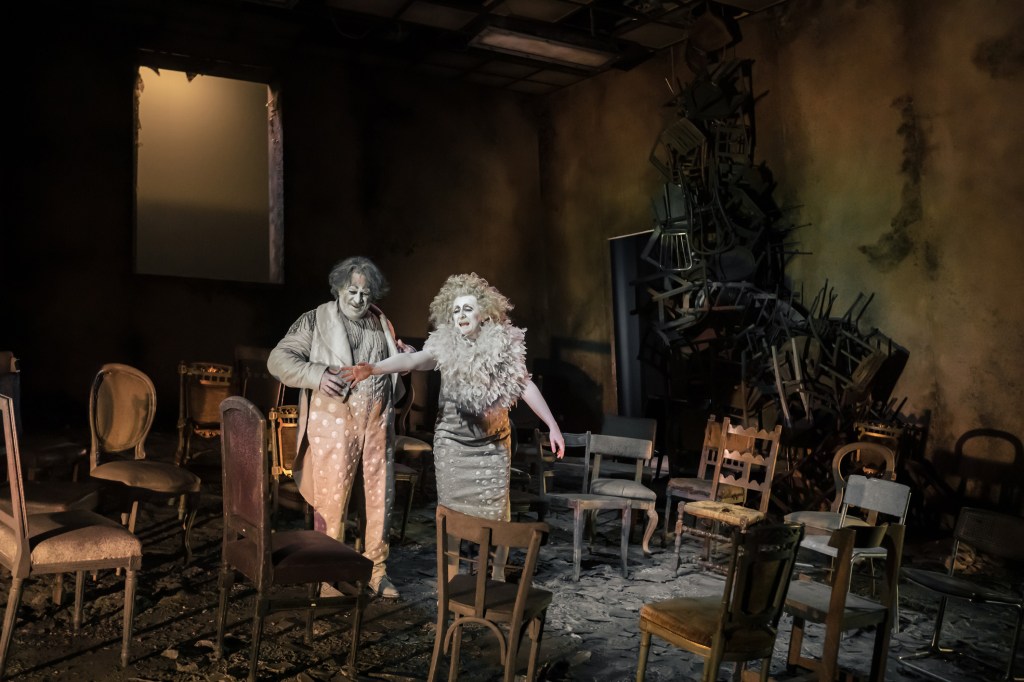 Binasco dirige Michele Di Mauro e Federica Fracassi in una commedia i cui tratti assurdi si dissolvono in un vuoto carico di parole che via via perdono senso, in una dimensione di frustrazione che a distanza di quasi settant’anni dal debutto dello spettacolo (prima assoluta al Théâtre Lancry di Parigi, il 22 aprile 1952) sembra parlare direttamente al nostro disarmante presente.
