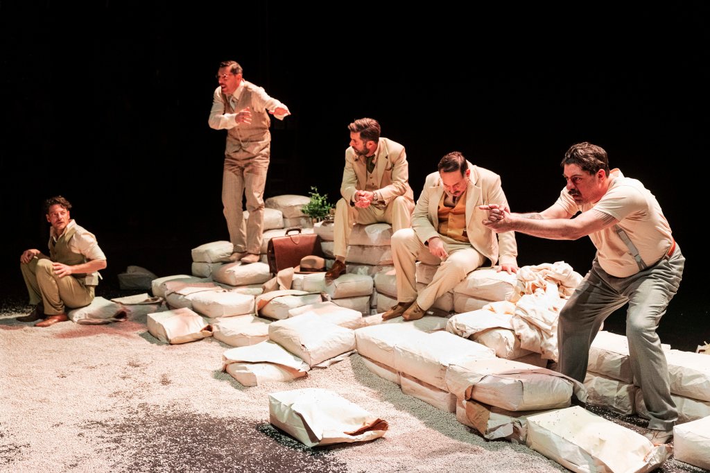 Racconta Serena Sinigaglia di come si sentisse smarrita e frastornata a vivere durante il lockdown del 2020 in cui fummo costretti, a seguito del propagarsi della pandemia del covid 19. Di fronte a questo disagio la regista trovò una via d’uscita leggendo e scelse il libro che meglio di altri si avvicinasse alla situazione che il mondo stava vivendo in quel momento: “La peste” di Camus che, come lei stessa scrive nella presentazione di quello che diventerà uno spettacolo, “scandaglia a fondo l’animo umano e lo fa in un momento estremo, di assoluta emergenza”. Come successe nel gennaio 2020, quando si presentarono i primi casi di covid 19 che portarono poi al lockdown, anche ne “la peste” di Camus accade che, dopo una moria di topi, si diffonda una malattia che si scopre essere peste, che si credeva debellata da secoli, e che porta alla morte centinaia di persone. L’azione si svolge a Orano nell’allora Algeria francese negli anni ’40, dove i morti si moltiplicano e, mentre il dr. Rieux, protagonista del romanzo, cura a fatica gli ammalati, dalla Francia arriva l’ordine di isolare la città, per impedire che la malattia si possa diffondere. L’analogia con il nostro periodo di lockdown è lampante. Così Serena Sinigaglia ha voluto portare in scena il romanzo chiedendo l’aiuto di Emanuele Aldrovandi che, dopo averlo tradotto, ne ha scritto una drammaturgia adattata al teatro. In questo modo sono stati fatti salvi i dialoghi più significativi, ma senza rinunciare a diverse parti discorsive scritte da Camus, e queste sono state utilizzate sotto forma di brevi racconti recitati dagli attori stessi durante le loro varie conversazioni. I personaggi più importanti del romanzo sono tutti interpretati da cinque attori. Solo Mattia Fabris e Oscar De Summa sostengono un solo ruolo a testa (rispettivamente il dr. Rieux e l’amico Tarrou). La scena è occupata da sacchi di sabbia sui quali siedono i cinque attori. I sacchi hanno una funzione simbolica: ogni volta che c’è la notizia di un accadimento doloroso, un sacco viene squarciato e ne viene fatta uscire la sabbia spargendola sul pavimento, quasi a significare una vita che è venuta a mancare. Gli attori colloquiano fra di loro e, quando devono raccontare un episodio che fa parte della vicenda, si avvicinano al proscenio, come a rivolgersi al pubblico. Uno dei dialoghi più importanti si svolge tra il prete (nel romanzo Padre Paneloux, interpretato da Alvise Camozzi, che sostiene anche i ruoli di Cottard, il quale lucra sulla penuria dei beni di prima necessità, e in quello di un ubriaco) e il dr. Rieux: il primo vede nell’avvento della peste una punizione divina che colpisce gli uomini per i loro peccati, il secondo si dichiara uomo di scienza, è un laico e non accetta questa tesi: “Diciamo che a me piace più stare dalla parte dei vinti che da quella dei santi” (nel pensiero del dr. Rieux è ravvisabile quello dello stesso Camus). Significativa la convulsa cerimonia di vestizione e svestizione di tute e guanti protettivi che ricordano quelle usate negli ospedali dai nostri sanitari quando devono avvicinare gli ammalati di covid. Parole chiave che sono pronunciate e che ci eravamo abituati a sentire negli ultimi anni (“vietati i funerali”, “fosse comuni”, “coprifuoco”): queste parole furono usate anche da Camus quando pubblicò il suo romanzo nel 1947, ma che aveva iniziato a scrivere in parte già durante il periodo bellico. Egli, infatti, interpretava la peste come una metafora della guerra. E, proprio nei giorni drammatici che stiamo vivendo adesso, “La peste” rappresentata a teatro da Serena Sinigaglia, oltre a quella della pandemia, potrebbe contenere un’ulteriore metafora, ingigantita anche dal suono della sirena di allarme bellico che viene emanato all’inizio. E tuttavia sono le ultime parole pronunciate da Rieux che parlano di solidarietà tra gli uomini e che nasce da un amore terreno, laico, come lo definisce la Sinigaglia, che si manifesta proprio quando si è di fronte a una calamità che colpisce tutti, a prevalere e a dare, nell’unione, un senso alla vita umana che rende l’uomo lontano dalla bestia.