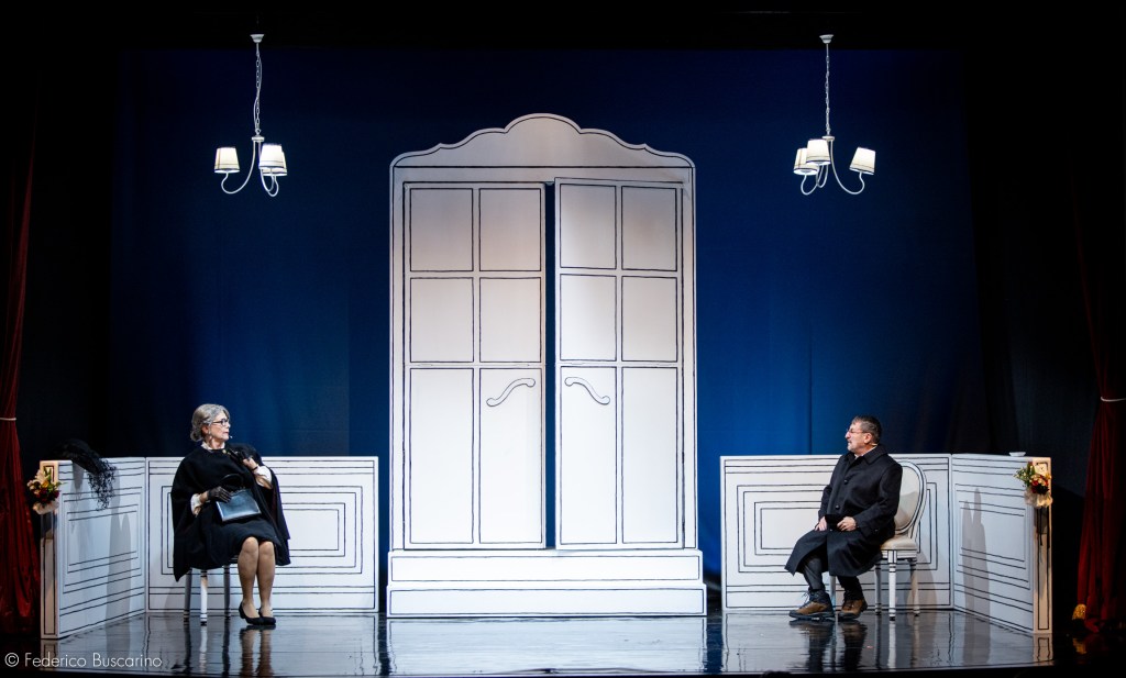 Questa bella commedia della Compagnia de Gli Incamminati ha avuto una prima nazionale nel dicembre dello scorso anno sempre al Teatro Oscar e viene ora ripresa per altri quattro giorni, troppo pochi perché ha tutte le caratteristiche per piacere al grosso pubblico. Intanto la presenza di due attori, entrambi formidabili nei ruoli che ricoprono. Tanto che, per esempio, Giacomo Poretti in due momenti della serata riesce a coinvolgere, nelle sue battute, anche il pubblico. Ma la cosa più importante, come ha dichiarato il regista Marco Zoppello è che il testo tratta argomenti profondi come la morte, che per molti rimane un tabù (e il personaggio di Ambrogio ne è un esempio), l’inseguimento dell’eterna giovinezza, il dramma della separazione che si verifica in una coppia quando uno dei suoi componenti viene a mancare. Sostanzialmente le modalità per vivere questi temi possono essere di due modi opposti: interpretarli in chiave comica può essere liberatorio perché, pur riconoscendone la drammaticità, si riesce a mostrarli quali sono e il pubblico ne prende maggiore consapevolezza, perché fanno parte della realtà della vita.