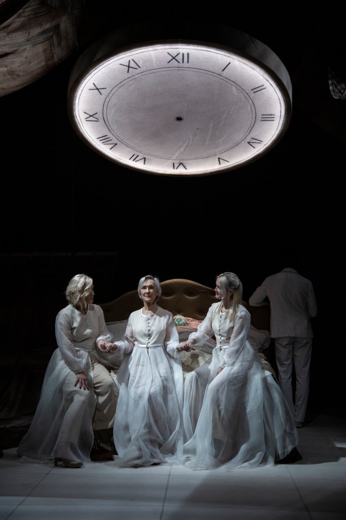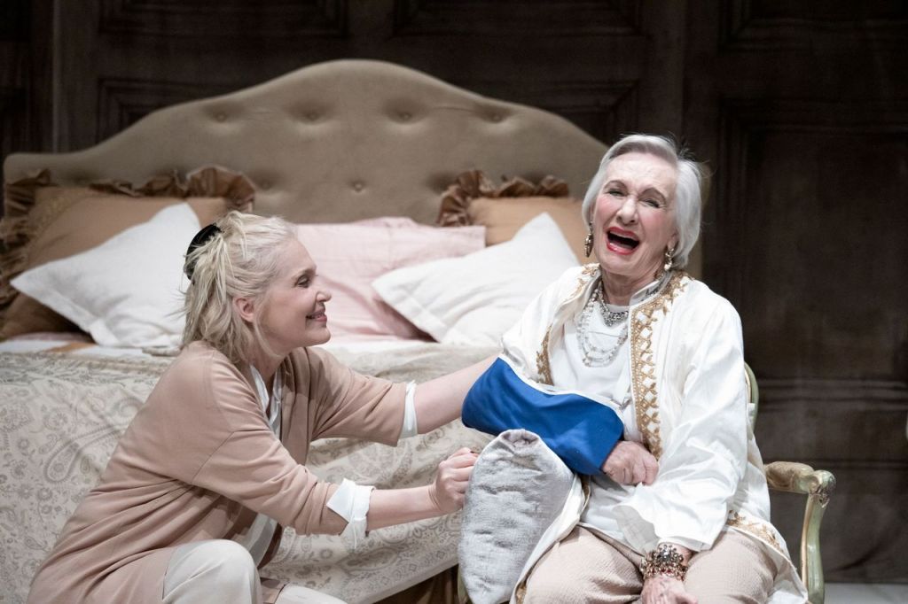 Ferdinando Bruni ha prestato un magnifico esempio di regia, sfruttando la bravura eccezionale delle due attrici principali e riprendendo con cura il testo tradotto nel 1995 da Masolino d’Amico. Il tema della commedia non è certo allegro, eppure Bruni ha saputo trovare momenti che suscitano una forma di ilarità, nonostante la fondamentale drammaticità della trama: per esempio nei discorsi della 92enne del primo atto, quando racconta un episodio scabroso o quando si parla di incontinenza e di confusione mentale, o in quelli della 50enne del secondo atto, quando la donna scende in dettagli di natura sessuale. Il secondo atto, poi, assume, in diversi momenti, anche toni grotteschi. Le scene di Francesco Frongia, ricche di oggetti simbolici, sono funzionali all’argomento della commedia, le luci di Michele Ceglia, così ricche di luminosità nelle variazioni cromatiche, sanno regalare spessore visivo, molto belli i costumi di Elena Rossi, tutti studiati su cromature beige, che fanno nuance con i gioielli indossati da Ida Marinelli nel primo atto.