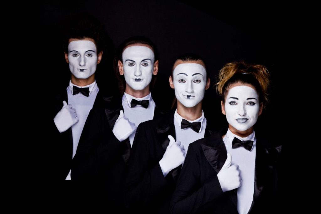 Quattro figure vestite di nero e truccate di bianco entrano in una scena vuota e col solo uso del corpo evocano gli scenari più fantasiosi. Ecco comparire di fronte agli occhi del pubblico un allegro circo, una gara olimpica, un misterioso mondo sottomarino e molto altro ancora. A volte come in un film in 3D o in un’esperienza di realtà aumentata, altre come in una vecchia pellicola in bianco e nero, vengono presentate sequenze tratte dalla quotidianità, fatta di tic comici e buffe situazioni, ma anche oniriche storie d’amore tra due statue viventi e poetici ritratti della natura. Una serie di scene indipendenti che vanno a comporre un grande racconto tra il realismo e l’immaginazione. Scritto e diretto dalla regista Liubov Cherepakhina, insegnante della rinomata Accademia di Varietà e Arti Circensi di Kiev, Anime leggere accompagna lo spettatore in un viaggio pieno di risate nella commedia della vita, tra poesia e satira sociale, con uno sguardo al contempo ironico e delicato. Eredi spirituali di Marcel Marceau, i Dekru sono un pluripremiato quartetto di mimi ucraini (vincitori al Festival Mondiale del Circo di Mosca e al Festival di Clown e Mimi di Odessa) il cui virtuosismo fisico ha portato al successo planetario uno spettacolo che, grazie ad un linguaggio universale che non necessita di parole, ha divertito e commosso i paesi di tutto il mondo, tra i quali Francia, Germania, Polinesia,Tahiti, Nuova Caledonia, Belgio, Paesi Bassi, Polonia e Svizzera, oltre che Italia, Russia e Ucraina. In televisione, hanno stupito i giurati di Ucraina’s got talent e Tu sí que vales Italia. Il quartetto è stato scelto per esibirsi durante l’Udienza di Papa Francesco per il Giubileo dello Spettacolo Popolare. I Dekru sono tra i protagonisti del Gran Gala du Cirque, spettacolo che riunisce i migliori performer circensi internazionali in un’unica grande serata destinata a palchi prestigiosi.