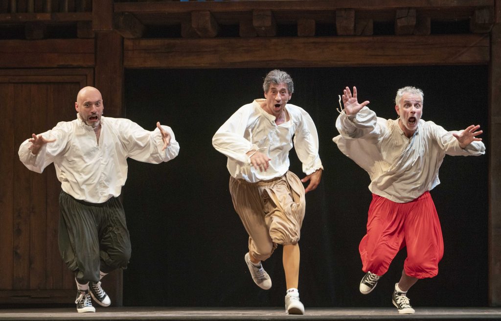 Dopo aver debuttato all’Edimburgh Festival Fringe nel 1987 è stato replicato al Criterion Theatre di Londa per nove anni, diventando uno degli spettacoli più conosciuti al mondo. Una parodia di tutte le opere di William Shakespeare eseguita in forma comicamente abbreviata da tre attori, usando le più svariate tecniche interpretative. Veloce, spiritoso e fisico, è pieno di risate per gli amanti e soprattutto per gli odiatori di Shakespeare. Una sfida teatrale ai limiti dell’incredibile: come condensare l’opera omnia del Bardo, 37 opere, in 90 minuti? O raccontare l’Amleto in 43 secondi? Tutto Shakespeare in 90 minuti è un’immersion leggera e stravagante nel mondo shakespeariano, un omaggio divertito e divertente al grande drammaturgo. La potenza e la poesia dei suoi versi vengono prevedibilmente meno ma lo scopo, in fondo, non è altro che divertire il pubblico, incuriosirlo e svelare il lato comico che si cela anche nelle tragedie più cupe.
