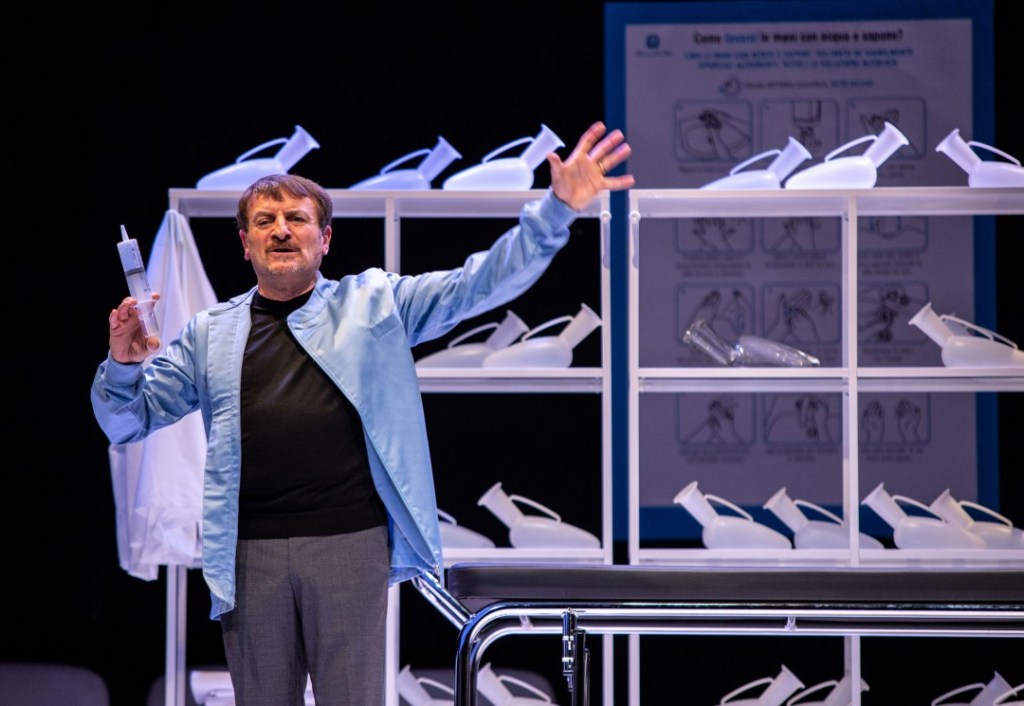 Prima di fare l’attore Giacomo Poretti ha lavorato per undici anni come infermiere nell’Ospedale di Legnano e ha fatto tesoro di questa esperienza per creare lo spettacolo che, parafrasando il titolo di un famoso film in cui aveva recitato quando faceva parte del gruppo Aldo Giovanni e Giacomo, ha per titolo “Chiedimi se sono di turno”. Il monologo è stato rappresentato per la prima volta nel 2019 e periodicamente è andato in scena in vari teatri. In apertura dell’attuale stagione teatrale Poretti lo ha riproposto come evento speciale e per soli due giorni al Teatro Oscar, di cui è codirettore, riportando il consueto successo che venne riconosciuto al debutto di tre anni fa e che si ripete a ogni ripresa. L’attore, come spesso succede quando è da solo sul palcoscenico, ha fatto “da spalla” al pubblico coinvolgendolo più volte a collaborare con lui e i presenti in platea non si sono lasciati pregare, rendendo tutta la pièce ancora più divertente. Le gag si sono susseguite prendendo come riferimento tutto quello che di tragicomico può accadere a un infermiere in ospedale specialmente nei turni di notte, quando per esempio deve lottare contro il sonno perché deve essere pronto a correre per rianimare un paziente in arresto cardiaco. E tante sono le incombenze tra le quali una delle più difficoltose è quella di mettere il gesso a un ricoverato che si è rotto il bacino o, peggio, quando si trascorre una mattinata a disinfettare e lavare una cinquantina di pappagalli. La forza di Poretti è quella di saper cogliere il lato comico da ogni situazione drammatica e in questo ne ha goduto tutta la pièce. Da ex professionista del mestiere ha sciorinato termini medici anche astrusi saggiando la competenza del pubblico tra i quali erano presenti diverse persone che lavorano in ospedali e questi momenti sono stati tra i più spiritosi. Nel monologo è stato rappresentato quanto sia difficile per un infermiere single ottenere giorni di ferie specialmente nelle festività comandate e nei periodi estivi più caldi perché bisogna dare il posto ai colleghi con famiglia. E proprio per questo problema l’infermiere Poretti faticò tanto per ottenerle nell’estate del 1982 quando andò in Spagna per assistere alle semifinali del campionato mondiale di calcio. Quell’episodio è servito all’attore per rivivere tutto l’entusiasmo della vincita del trofeo al nostro paese. In un ospedale, si sa, si vivono situazioni dolorose che non coinvolgono solo i ricoverati e i loro parenti ma anche il personale che lavora al loro capezzale. Poretti ne ha ricordato in particolare due che gli sono specialmente rimasti impressi nella memoria e ancora adesso, dopo anni che non esercita più quel mestiere, non riesce a dimenticare. Non è mancata pertanto durante il monologo quella nota malinconica che porta a riflettere sulla condizione umana. Al termine, gli applausi scroscianti dell’affezionato pubblico hanno ripagato Poretti della sua faticosa prestazione che è durata, a causa delle fasi di improvvisazione e di coinvolgimento dei presenti, per più di quell’ora prevista inizialmente.