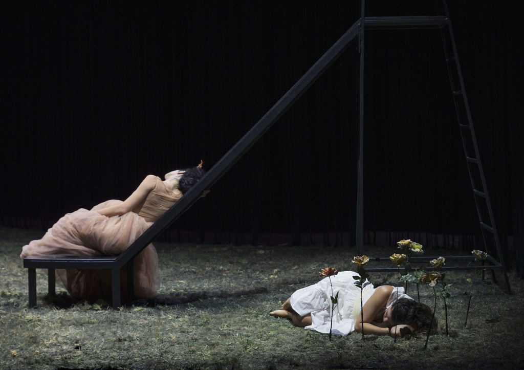 Ippolita l’amazzone e Titania la madre, Artemide vergine che protegge la maternità, donna che protegge donna, lasciando fuori il maschile. Per volontà? Per necessità? Perché è una fase necessaria della vita? Una transizione ad un’altra era? Si potrebbe riscrivere il mito, come propone Elena? Apollo fugge e Dafne gli dà la caccia? E poi: una caccia è sempre necessaria? Come se ne esce? Esistono piccoli pezzi scritti dal nuovo femminismo, pionieri di un nuovo linguaggio, ancora naif ma che danno speranza. Shakespeare, dal canto suo, ha la speranza che esista “amore”, quell’amore vero che fa piangere gli amanti, che fa piangere Tisbe-Giulietta per la morte di Piramo-Romeo. Ma è una speranza in un trascendente “amore” che dialoga in modo ancora inafferrabile col ciclo vitale. “Amore” legato a “natura” è credenza che funziona nei riti di campagna (Shakespeare li ha conosciuti) ma non più nei riti di città. Eppure che esista “amore”, che si possa gestire “desiderio” e che esso possa essere evocato e contenuto dalla “parola”, dal suo suono e dal ritmo del rito del teatro è convinzione ancora, in questo momento della sua vita, per William Shakespeare.