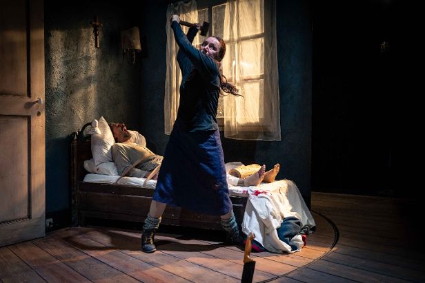 La vicenda agghiacciante e claustrofobica dello scrittore Paul Sheldon caduto nelle mani della fan Annie Wilkes rivive in teatro, uscito dalla penna di colui che sceneggiò il film e diretto da Filippo Dini. In scena nei panni dello scrittore Aldo Ottobrino, nel ruolo dell’infermiera disturbata Annie Wilkes, Arianna Scommegna e Carlo Orlando nel ruolo dello sceriffo, con musiche di Arturo Annecchino, scene e costumi di Laura Benzi, luci di Pasquale Mari (insignito per questo lavoro del premio Ubu 2021), trucco di Cinzia Costantino e con la traduzione di Francesco Bianchi. Ciò che racchiude questo testo, però, va ben oltre la storia terrorizzante dello scrittore Paul Sheldon, salvato da un brutto incidente stradale dalla sua fan numero uno che si trasforma in una carceriera e non si ferma davanti a niente pur di tenere in vita il suo personaggio preferito. Mentre Annie diventa l’incarnazione diabolica dell’amore che ogni essere umano nutre verso le storie e verso chi le racconta, l’autore sembra diventare un moderno Sherazade, o racconta o muore. Ma non è ancora tutto, nell’angoscia della costrizione egli affronta faccia a faccia, come mai lo ha affrontato nella sua vita, il suo demone, incarnato da Annie, quello che accompagna la vita di ogni artista: il demone tirannico e folle della creazione, che tutto dona e che in cambio vuole la vita.