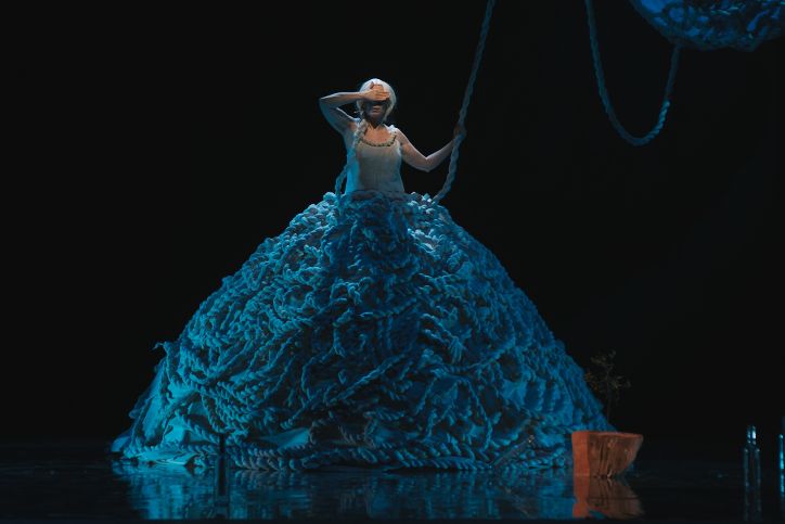 Persa in mezzo al mare ad aspettare, isolata, a tutti gli effetti isola, perché il mare ogni giorno cresce e cancella le spiagge di Itaca, a cui nessun Nessuno sembra oggi interessato ad approdare, Penelope è una donna/isola, avvolta e imprigionata nel filo che tesse dal giorno in cui è rimasta sola.