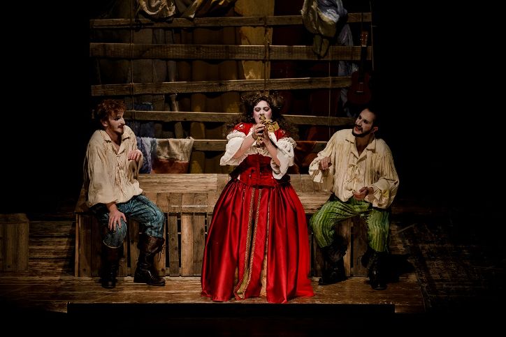 1574. Venezia in subbuglio. Per calli e fondamenta circola la novella: Enrico III di Valois, diretto a Parigi per essere incoronato Re di Francia, passerà una notte nella Serenissima. Un onore immenso per il Doge e per la città lagunare. Giulio Pasquati e Girolamo Salimbeni, coppia di ciarlatani saltimbanco dai trascorsi burrascosi, vengono incaricati di dare spettacolo in onore del principe. Mica una storia qualunque, certo che no, la più grande storia d’amore che sia mai stata scritta: Romeo e Giulietta. Due ore di tempo per prepararsi ad andare in scena, provare lo spettacolo ma, soprattutto: dove trovare la “Giulietta” giusta, casta e pura, da far ammirare al principe Enrico? Ed ecco comparire nel campiello la procace Veronica Franco, poetessa e “honorata cortigiana” della Repubblica, disposta a cimentarsi nell’improbabile parte dell’illibata giovinetta. Si assiste dunque ad una “prova aperta”, alla maniera dei comici del Sogno di una notte di mezza estate, dove la celeberrima storia del Bardo prende forma e si deforma nel mescolarsi di trame, di dialetti, canti, improvvisazioni, suoni, duelli e pantomime. Shakespeare diventa, per noi, materia viva nel quale immergere le mani, per portare sul palco, attraverso il teatro popolare, le grandi passioni dell’uomo, le gelosie “Otelliane”, i pregiudizi da “Mercante”, “Tempeste” e naufragi, in una danza tra la Vita e la Morte, coltelli e veleni.