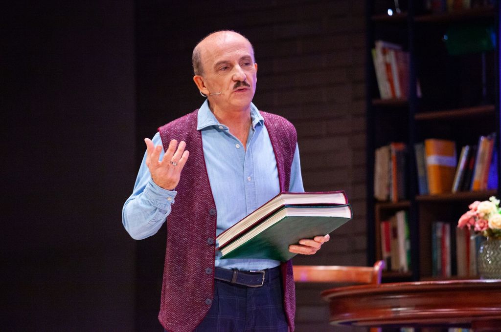 Una commedia esilarante di genere noir, ricca di colpi di scena, dalla sceneggiatura perfetta dove ogni momento è perfettamente calibrato in una scrittura coinvolgente che tiene sempre desta l’attenzione dello spettatore. Dopo un primo tempo, dove la vicenda sembra prendere una piega prevedibile, nel secondo tutto viene ribaltato a sorpresa e questo costituisce un arricchimento inaspettato della trama. Carlo Buccirosso è perfettamente a suo agio nei panni di Mario Martusciello, un personaggio che si è cucito sapientemente addosso anche nel fisico oltre che nel parlato, ricco di citazioni sospese tra un Troisi e, in alcuni momenti, un Peppino De Filippo. Mattatore della scena, sfodera una ricca gamma di variazioni recitative, tra le quali anche quella del ballo, a seconda delle diverse azioni che si avvicendano nella pièce, tutte felicemente accolte da un pubblico interamente conquistato. Accanto a lui una compagnia di attori molto affiatata e collaborativa che si giova dell’intelligente direzione del regista che, generosamente, sa anche evitare più volte di primeggiare per dare a tutti i componenti la giusta occasione di mettersi in luce nei loro vari momenti recitativi. Tra tutti sovrastano Maria Bolignano, nel ruolo di Margherita, e Elvira Zingone in quello di Carlotta, tra l’altro particolarmente irresistibili nella scena del litigio del secondo atto, molto vicina alla tradizionale commedia partenopea. Peppe Mieli è il mellifluo e cospiratore Lorenzo, Donatella de Felice veste i panni della fin troppo premurosa sorella di Mario mentre Fiorella Zullo è la sorella di Margherita, Fabrizio Miano è l’aiuto regista e recita anche la parte del comico e impiccione fattorino. Bene ideata la scenografia di Gilda Cerullo e Renato Lori che, grazie all’apporto delle luci di Luigi Della Monica, dà modo di creare in pochi secondi lo stacco in tre momenti di taglio cinematografico, quando la parete destra appare con il vetro infranto a quella dove il vetro è intero. Le musiche di Cosimo Lombardi sono altro elemento positivo nell’accompagnare in special modo le scene più drammatiche. Completa il cast Zaira de Vincentiis che si è occupata dei costumi. Molto calorosi gli applausi del pubblico, anche a scena aperta. Repliche fino al 14 maggio.