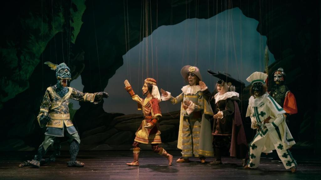 Il Mostro Turchino è ispirato all’omonima “fiaba tragicomica” scritta da Carlo Gozzi nel 1764 e al copione manoscritto più antico presente negli archivi storici della Compagnia Carlo Colla & Figli, pensato dal marionettista Giuseppe Fiando nel 1815 e mai rappresentato dalle marionette Colla.