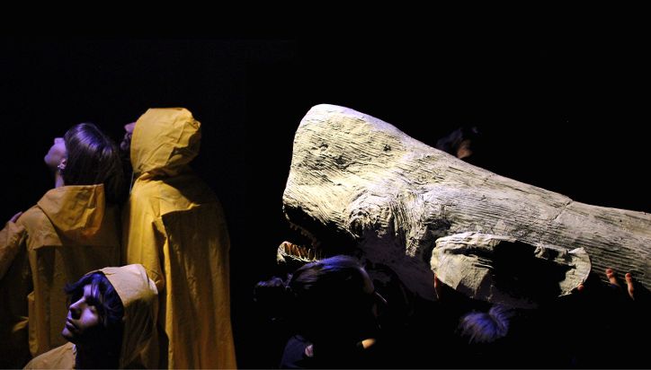 Il Moby Dick di Ufo nasce dal lavoro biennale di una ciurma di 60 ragazzi dai 15 ai 20 anni guidati da maestri artigiani, artisti, pensatori… La robotica, il marionettismo, la tecnologia povera di vecchie lavagne luminose, collaborano ad animare i tormenti del leggendario Achab in uno spettacolo di teatro d’immagine che è un’immersione nei contrasti: tra la passione e l’ossessione, la solitudine e la collaborazione, l’entusiasmo della ricerca e il rischio onnipresente del naufragio.