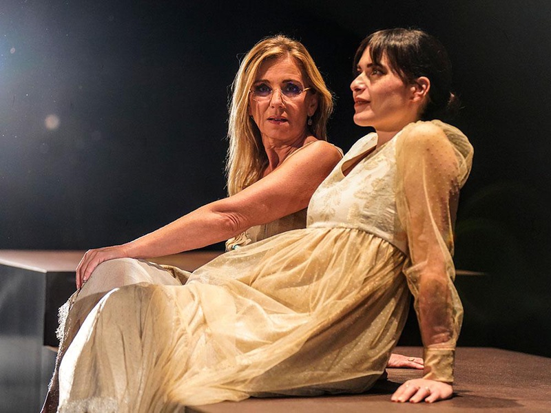 Lo spazio scenico, ideato e curato da Vincent Longuemare, è un gioco di geometrie di quadri luminosi, punti di contatto tra la potenza delle parole di Concita De Gregorio e la voce pura e arcaica di Erica Mou.