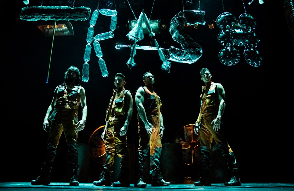 Si può fare musica, e che musica!, usando solo le percussioni: è quanto accade al Teatro Menotti in prima nazionale per tre giorni con “Trash!”, letteralmente, dall’inglese, immondizia, titolo che non vuole conferire allo spettacolo una qualità negativa secondo il pensiero corrente, ma si riferisce solo all’argomento trattato nella rappresentazione. A suonare sono Bruno Alves, Frank Mark, Miguel Ángel Pareja, Felipe Dueñas che fanno parte della Tothem Company nata nel 2020 e diretta dal poliedrico Gorka González. Percussioni sì ma non quelle appartenenti alla serie di strumenti tradizionali bensì altre di recupero raccolte tra oggetti in disuso e finite in bidoni della spazzatura. Gli stessi musicisti, che, dalle tute che indossano, si evince essere operatori ecologici, all’inizio dello spettacolo sono rinchiusi in neri sacchi usati per l’immondizia e, dopo che ne sono usciti a fatica, iniziano fin da subito a percuotere i primi oggetti a portata di mano. Sono oggetti senza alcuna rilevanza, buttati via perché hanno perso la loro funzione e il luogo dove sono finiti ne connota il nome corretto: rifiutati, come quelle cose alle quali non si dà più alcuna possibilità di ripresa, come accade con le persone non più amate e abbandonate a se stesse. A riscattarli e a conferire loro un nuovo valore sono proprio i quattro sul palcoscenico che li raccolgono oppure se li ritrovano catapultati ai loro piedi. Sono pneumatici, ombrelli, cassette degli attrezzi, bombole di butano, nastro adesivo, elastici, scopettoni e soprattutto bottiglie di plastica vuote (e queste ultime sono usate nelle esibizioni più salienti e inaspettate). Il concerto è composto da diverse fasi che vedono i quattro che si esibiscono principalmente insieme e in alcuni casi in assoli e che sorprendono per forza, energia, capacità istrioniche e atletiche nei numeri che si accompagnano a quelli più specificamente musicali e che costituiscono comunque l’ossatura di tutto lo spettacolo. Musicisti ma anche ottimi danzatori perché tra i brani eseguiti gli strumenti percussivi sono costituiti dai piedi. Non parlano o perlomeno non usano un linguaggio percettibile, assumendo espressioni e scherzose tonalità vocali da trogloditi e tuttavia riescono a essere così comicamente espressivi da farsi comprendere da un pubblico che viene incitato a collaborare vocalmente e con il clap clap delle mani. La loro padronanza del palcoscenico è completa e trascinante e ieri sera si è espressa al meglio quando hanno scelto due persone del pubblico chiamate sul palco a interpretare con loro, dopo essere state opportunamente istruite e provocando esilaranti gag, le prime note della Quinta Sinfonia di Beethoven usando solo bottiglie di plastica vuote. Alla fine non è mancato il bis di cortesia. Sala sold out occupata da un pubblico entusiasta. Repliche questa sera alle ore 20,00 e domani pomeriggio alle ore 16,30.