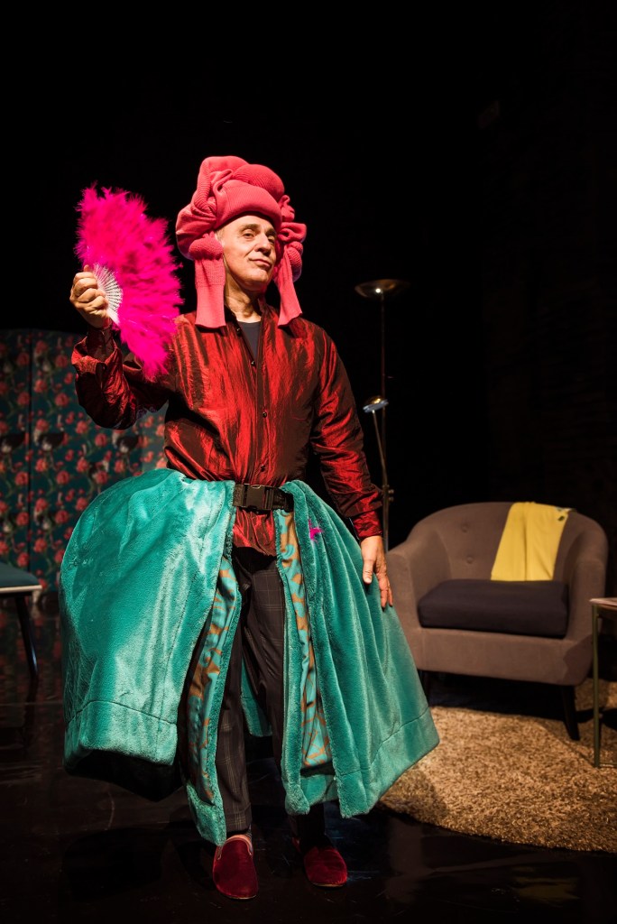 Guillame è il protagonista del testo autobiografico di Guillame Gallienne “Les garçons et Guillaume, à table!” scritto nel 2012, rappresentato a teatro nel 2013 a la Comédie Française cui ha fatto seguito nel 2014 il film con il titolo “Tutto sua madre” diretto dallo stesso autore. In Italia a interpretarlo è Gianluca Ferrato, il debutto avvenne nel 2020 al Teatro Le Musichall di Torino, e in questi giorni è presente al Teatro Gerolamo. In una scena essenziale costituita da un divano, una poltrona, cuscini e un paravento sul fondale, ricca di colori studiati con estrema cura nei singoli dettagli e negli accostamenti tra loro, il tutto dovuto alle mani preziose di Yasmin Pochat e Agostino Porchietto, Ferrato/Guillame racconta le sue esperienze e si relaziona anche con gli altri personaggi che sono tanti (io ne ho contati almeno diciotto) e tutti interpretati da lui. Una pièce di circa un’ora e mezza che si conduce senza tregua, incalzante, divertente e che scandaglia con profondità i temi dell’identità di genere e della sessualità anche in relazione ai nostri anni più recenti con la nascita dei movimenti per il riconoscimento dei diritti e l’eliminazione delle etichette imposte dalla società e dalla famiglia. E così in un periodo in cui sono caduti tutti i tabù sessuali fare il coming out al contrario come accade al protagonista del monologo ha il sapore della novità.