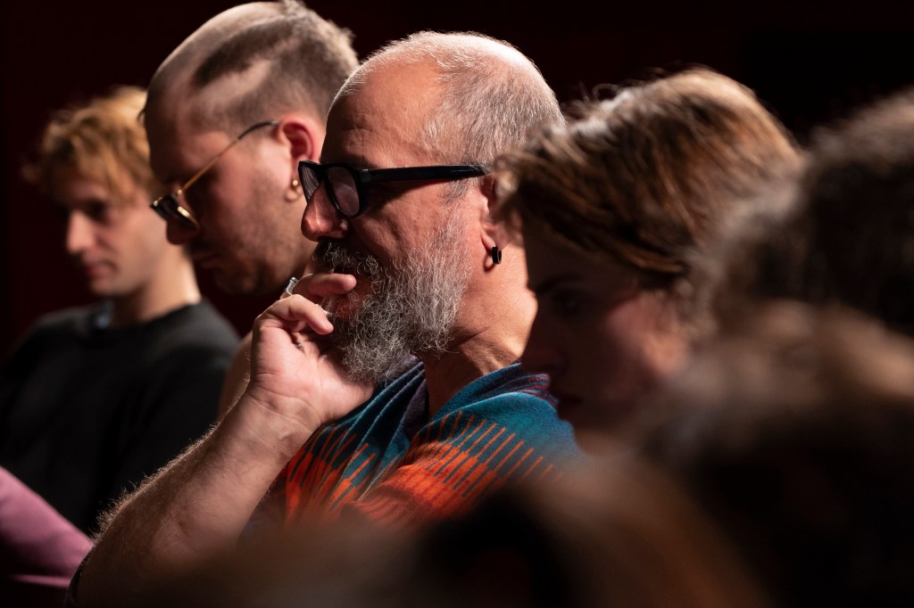 Progettare, costruire e coltivare – insieme ad altre realtà teatrali e culturali – un comune itinerario pedagogico che non sia incalzato dall’ossessione di un compiuto esito spettacolare significa valorizzare il tempo come strumento di scoperta e conoscenza, affinché lo spazio fisico del lavoro e lo spazio sociale possano mescolarsi e divenire spazio umano tout court, luogo di apprendimento, ricerca e trasformazione. Nel quadro delle celebrazioni per il centenario della nascita di Giovanni Testori, è quel che accade con BAT_Bottega Amletica Testoriana, iniziativa nata dalla preziosa alleanza tra AMAT, vivace capofila del progetto, Pesaro 2024 Capitale italiana della cultura, la compagnia stabilemobile, Casa Testori, l’Associazione Giovanni Testori e il Piccolo Teatro di Milano. A cura di Antonio Latella, già protagonista in passato di una affine e mirabile esperienza con Santa Estasi, il ramificato percorso formativo, da settembre 2023 a febbraio 2024, coinvolge otto giovani interpreti donne e uomini – in dialogo anche con otto spettatrici e spettatori – in un doppio movimento speculare, di scavo nel proteiforme cosmo dell’artista di Novate, e di “riemersione” grazie a una serie di restituzioni pubbliche, sotto forma di Esercizi per gli attori, che ruotano attorno ai diversi attraversamenti dell’Amleto shakespeariano da parte dello stesso Testori. Il Teatro Grassi ospita una di queste tappe, aprendo le porte alla dimensione genuinamente artigianale della pratica scenica, secondo un vitale processo creativo che non ha timore di rinnovarsi per inseguire le innumerevoli trame possibili delle sue esplorazioni. (Claudio Longhi)