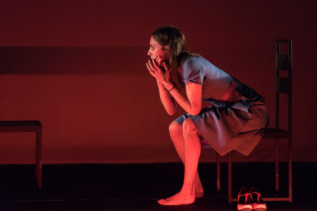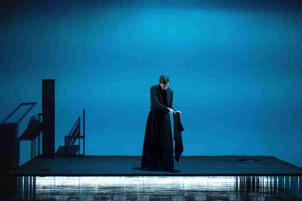 «Da subito ho immaginato il dialogo tra Maria e Tzia Bonaria come un dialogo tra sé e una parte di sé, tra una figlia e il suo genitore interiore. Per questo ho voluto realizzare uno spazio astratto, mentale, nel quale Maria cerca di rielaborare la morte della madre adottiva. Ciò darà origine ad un conflitto tra due aspetti di Maria: la parte rimasta bambina e la parte che deve diventare adulta. Il video mi ha permesso di rendere visibile le dinamiche emotive e relazionali tra queste due parti. La pedana sospesa crea una divisione tra l’attrice e il pubblico, è la gabbia mentale in cui Maria è intrappolata e di cui riuscirà a liberarsi soltanto alla fine, compiendo il fatidico gesto richiesto dalla madre. O meglio, ripetendolo davanti alla sua coscienza – e a noi pubblico – che la assolverà. Lo spettacolo, visto come una rêverie che si ripete ogni giorno uguale a se stessa, troverà in questa sofferta ripetizione del gesto la sua risoluzione, permettendo a Maria di uscire dall’ossessione e di andare in una nuova direzione di vita». (Veronica Cruciani)