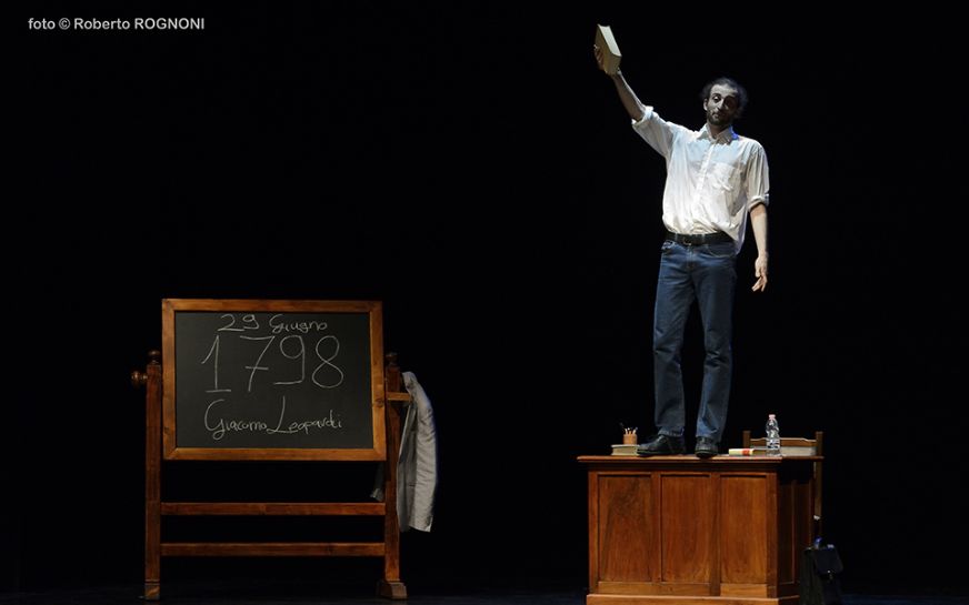 Andrea ha un sogno: insegnare. Nonostante il 110 e lode in Lettere e Filosofia per vivere è costretto a lavorare in un call-center finché un giorno finalmente riceve l’incarico di una supplenza proprio nella scuola media da lui frequentata in passato. La professoressa che deve sostituire gli lascia l’arduo compito di spiegare agli studenti “vita e opere di Giacomo Leopardi”. Così Andrea, anzi il Professor Roversi, dovrà misurarsi con una classe che, naturalmente, sarà rappresentata dagli spettatori presenti in Teatro. Nasce così una bizzarra ma coinvolgente lezione nella quale si mescoleranno poesie, riflessioni personali, interazioni con la platea e, attraverso l’opera di Giacomo Leopardi, il professor Roversi toccherà temi e problemi legati all’inadeguatezza, al desidero e alla paura d’amare, alla sensazione di essere sbagliati, di essere “fuori misura”. Un monologo originalissimo, divertente, appassionato che, in questo suo terzo anno di repliche ha già superato le 200 repliche in tutta Italia. In scena un bravissimo Andrea Robbiano che grazie a una qualità comunicativa fresca, spontanea ed emozionante ci trasporta nel mondo della poesia, dell’arte accompagnandoci con stralunata dolcezza da quella siepe all’infinito.