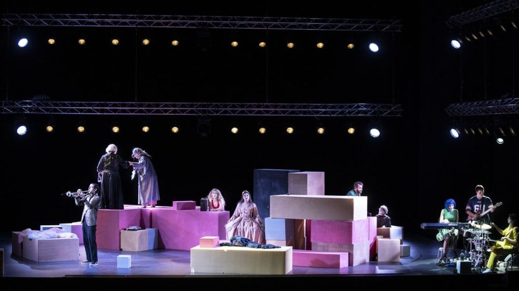 Nel complesso Rifici prende il testo di Feydeau e, pur attenendosi all’originale, lo rivolta come un calzino e lo rende più sapido apportandovi ulteriore brio e facendolo suo. Sostituisce i nomi del teatro dove sarebbe avvenuto l’innamoramento della sconosciuta per Vittorio Emanuele e quello dell’albergo rispettivamente con quelli del Piccolo Teatro e dell’hotel Feydeau. Inoltre, trattandosi di un vaudeville, pur affidandosi alle musiche di Zeno Gabaglio, inedite e composte per la commedia ed eseguite con strumenti quotidiani, non dimentica, per meglio attenersi a quel genere teatrale, di aggiungerne altre come “vaudevilles” prese dal repertorio attuale eseguite dagli attori i quali alternativamente sanno bene adoperarsi con voce, tromba, tastiera, batteria e chitarra. Si ascoltano così brani che fanno parte dei nostri anni come “Girls Just Want To Have Fun” di Cindy Lauper o “L’addio” di Franco Battiato. Mentre il dottore en travesti, il bravo Fausto Cabra, per meglio affermare la sua natura, si improvvisa novella Jeanne Moreau e accenna con voce tra il dolente e il grottesco la canzone “Each man kills the thing he loves”. Notevole la messa in scena che si giova di una compagnia di attori collaudata, ben assortita, che oltre alla recitazione verbale possiede capacità mimiche e agisce sul palcoscenico con singolare dinamismo fisico. Suggestiva la scenografia firmata da Guido Buganza e studiata in ogni singolo dettaglio e che si avvale anche del sapiente disegno luci di Alessandro Verazzi. In carattere i costumi moderni creati da Margherita Baldoni. Alla sera della prima un pubblico attento e molto divertito ha applaudito con entusiasmo. Repliche fino al giorno 26 novembre.