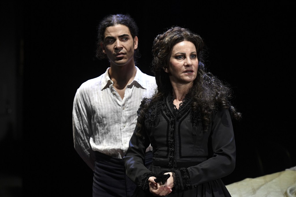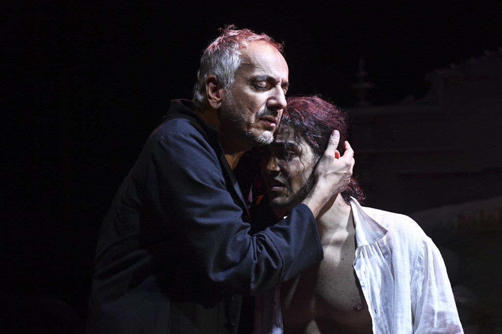 Il cast voluto da Cirillo è di grande eccellenza. Sabrina Scuccimarra, attrice di razza, entra perfettamente nel personaggio di Donna Clotilde, utilizza con padronanza il dialetto tanto da non temere di apparire sguaiata ma sa farlo con stile. Possiede la dote di far muovere il riso. Notevole sia nella parte di malata immaginaria sia in quella di donna che riscopre il desiderio sopito e rivela il suo lato passionale che la rende facile preda di Ferdinando (“Tu m’è fatta ascì pazza, nu tengo chiù sang dint’ e vvene” (“tu mi hai fatto impazzire e non ho più sangue nelle vene”). Anna Rita Vitolo, che all’inizio appare come personaggio insipiente, succube dei capricci di Donna Clotilde, emerge nella seconda parte rivelandosi come donna che vuole appagare a tutti i costi i suoi desideri erotici, e lo fa con disperazione fino a essere l’ideatrice crudele dell’atto finale. Molto talentuosa, in questo ruolo sa toccare i registri più diversi richiesti dalla psicologia del personaggio. Arturo Cirillo, è un attore poliedrico che negli abiti di Don Catellino sa mettere a frutto tutta la sua esperienza accumulata negli anni in ruoli drammatici. Il suo personaggio è infatti quello più sofferto di tutta la pièce, preda del desiderio erotico che è appagato solo se l’atto sessuale viene consumato con addosso l’abito talare e ha la valenza di un sacrilegio. Giudicato da Donna Clotilde “ricchione” e “prevete rattuso”, tormentato dal suo amore per Ferdinando tanto da non aver timore di dichiararlo apertamente. Il bravo Riccardo Ciccarelli è il Ferdinando intorno al quale ruotano i desideri degli altri personaggi. All’inizio per conquistarsi le loro simpatie sa mostrarsi dolce e ingenuo con tutti ma ha bene in mente che a comandare è Donna Clotilde e, quando avverte qual è il momento opportuno, le si mostra nudo tanto da sconvolgere la donna che ravvisa in lui un’incarnazione di San Sebastiano.