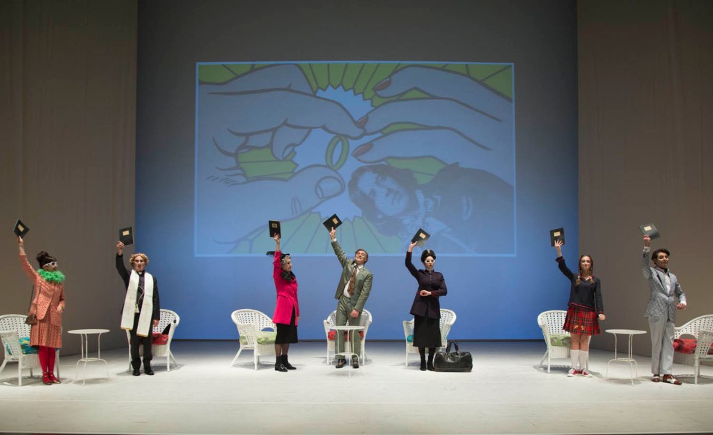 Ferdinando Bruni e Francesco Frongia, pur mantenendosi fedeli al testo, hanno privilegiato una recitazione nella quale a prevalere fossero sarcasmo e cinismo, ironia e finta ingenuità. I personaggi si muovono sul palcoscenico con parossismo, ciascuno di essi porta all’estremo una gestualità che ne rende al meglio la caratteristica psicologica. In questo sono aiutati dagli splendidi, coloratissimi costumi anch’essi creati a denotare la personalità dei singoli. Tutti gli attori sono degni di elogi, in particolare Ida Marinelli nel ruolo di Lady Bracknell, la cui entrata in scena esilarante è accompagnata da una musica ad effetto che sa creare un momento cruciale. E così Camilla Violante Scheller nella parte di Cecily, dalla notevole mimica facciale. Senza dimenticare i protagonisti maschili, Riccardo Buffonini (Algernon) e Giuseppe Lanino (John Worthing). L’ambientazione, nella sua semplicità, fatta da uno scenario minimalista con poche sedie e un fondale su cui sono proiettate immagini di Wilde in stile Andy Warhol richiama a un mondo queer e il rif musicale d’inizio, la “I Will Survive”, inno del gay pride, è uno dei simboli.