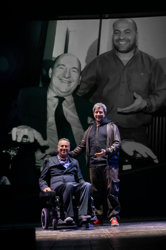Quasi Amici è una storia importante, di quelle storie che meritano di essere condivise e raccontate. Anche con il linguaggio delle emozioni più profonde: quello teatrale. Un adattamento per il teatro del soggetto e della sceneggiatura di Quasi amici è affascinante perché permette di dilatare, in drammaturgia teatrale, quelle emozioni che nascono per il cinema con un altro linguaggio, non solo visivo, ma anche filmico. Emozioni che devono irrobustirsi però con parole e simboli precisi sul palcoscenico per poter rimandare tutti noi a un immaginario condiviso con il quale far dialogare il proprio. E partecipare. Ed è straordinario raccontare ancora più nell’intimità delle parole, degli scambi, delle svolte narrative, delle luci, dei movimenti, che solo una drammaturgia teatrale può cogliere e restituire, dando il senso profondo di una grande amicizia in fieri. Osservando poi il percorso che compiono i due protagonisti per crescere, ognuno nella rispettiva vita e in quella dell’altro e di come uno diventi assolutamente necessario all’altro per poter proseguire indenne, o quasi, il proprio cammino su questa terra.