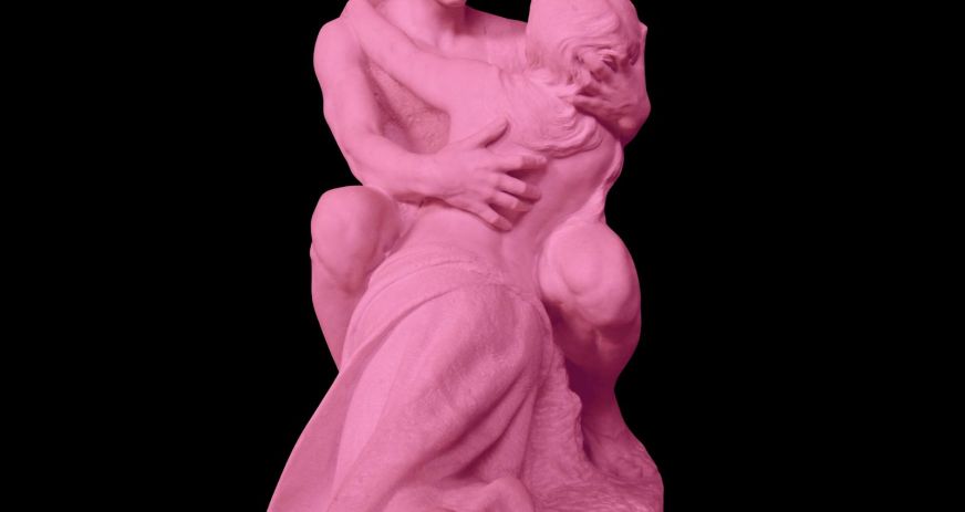 La scena, divisa in due, ci porta in due tempi diversi. La relazione tra i due vent’anni prima e quella di oggi. Nel centro l’opera d’arte danza.