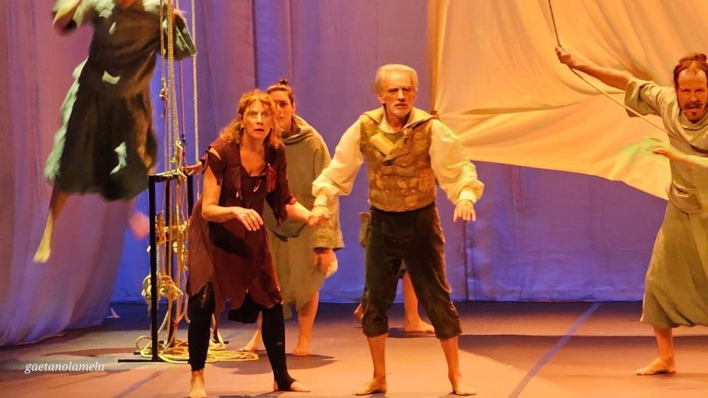 Nei loro panni, Angela e Montfort vivono le loro battaglie, si esaltano ai loro trionfi e si disperano alle tragiche rovine, in un racconto che schizza tra i secoli e i continenti ricorrendo a tutti i linguaggi offerti dalla narrazione: immagini, scenografie, musica, danza…in un abbraccio appassionato che raggiunge i cuori di ogni età, dai giovani a quelli che giovani lo sono dentro.
