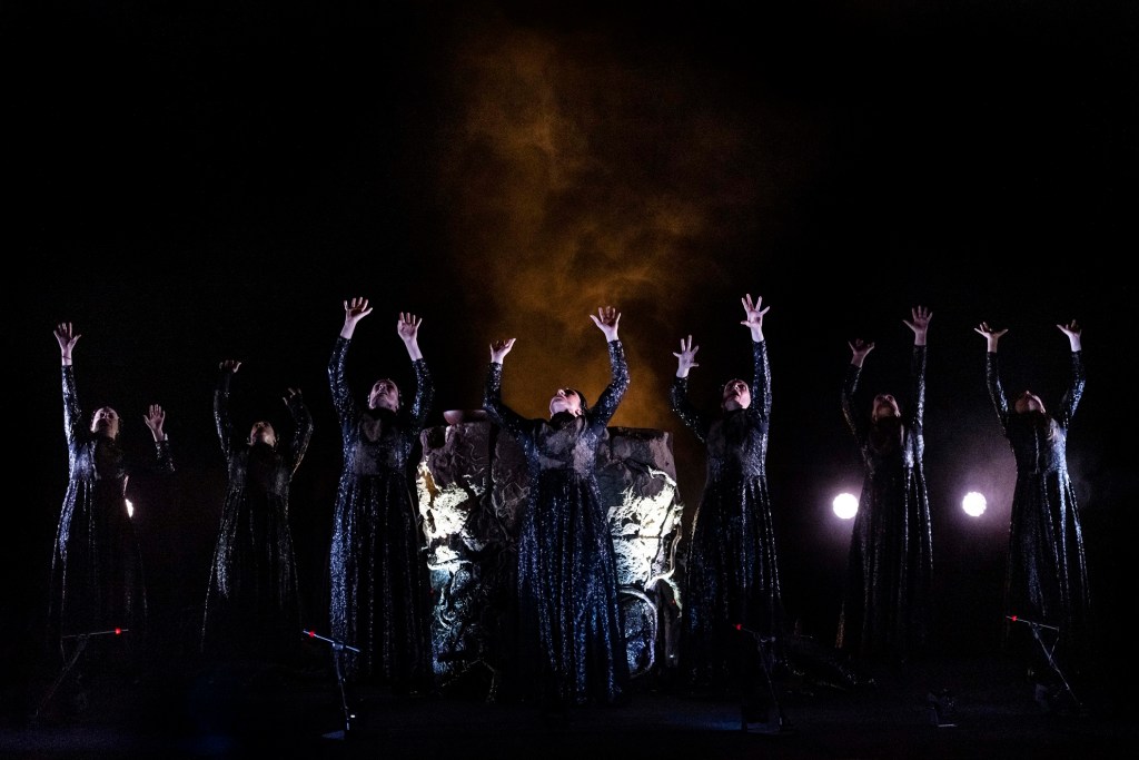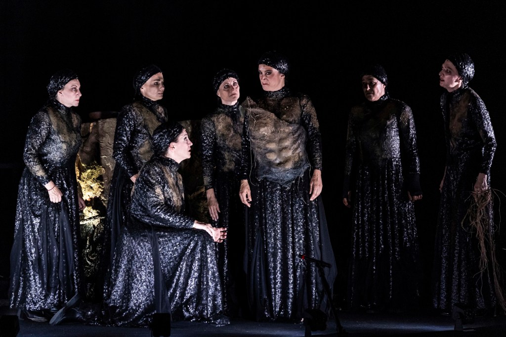 Queste attrici straordinarie, a cui mi lega un lungo sodalizio artistico, interpreteranno dunque il coro delle supplici e saranno anche, di volta in volta, i diversi personaggi della tragedia: Teseo, l’araldo tebano, Etra, Adrasto, il messaggero, il coro dei bimbi, Atena.