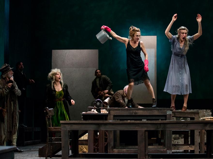 Alla sera della prima de L’albergo dei poveri alla quale ho assistito, Claudio Longhi, il direttore del Piccolo, prima dell’apertura del sipario, ha tenuto una breve presentazione dello spettacolo spiegando l’importanza che esso riveste per la storia del Teatro co-fondato da Giorgio Strehler che l’inaugurò proprio con quest’opera di Gor’kij. Ne cambiò il titolo per renderlo più vicino all’ambientazione. Era il 1947, e ora Massimo Popolizio lo ha riportato in scena, e in omaggio al grande regista triestino, ha lasciato immutato quel titolo utilizzando una nuova riduzione teatrale curata da Emanuele Trevi alla quale non sono estranei inserimenti di frammenti tratti da opere di altri autori tra i quali Cechov, Tolstoj, Puskin, fino a McCarthy. Ne è nata un’opera di co-produzione tra il Piccolo e il Teatro di Roma – Teatro Nazionale e rappresenta uno dei punti più alti dell’attuale stagione artistica del Piccolo Teatro.