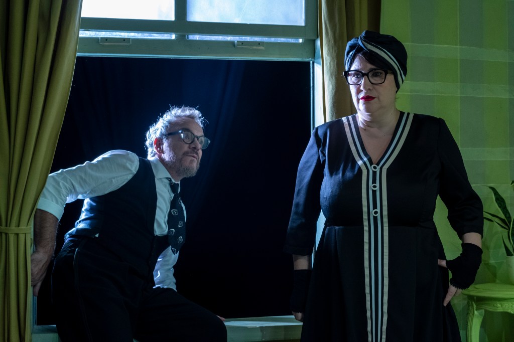 Nella commedia domina il paradosso e il grottesco e la perenne, futile, incessante lite tra Lui e Lei, ridicole marionette umane imprigionate nella ragnatela di un ménage familiare annoiato e ripetitivo. Il tema del contendere è sempre e solo un pretesto: la chiocciola e la tartaruga sono o non sono la stessa bestia? Un grimaldello assurdo (ma che i due vivono come fondamentale) che fa da trampolino a un dialogo sempre più serrato, funambolico e bellicoso che presto raggiunge le vette di un nonsense da comica finale, di un tragicomico Helzapoppin domestico. E tutto ciò mentre all’esterno della casa infuria una misteriosa guerra civile che i due, sordi e ciechi alla realtà, quasi non percepiscono, impermeabili alle bombe che esplodono, alle sparatorie che echeggiano nella via, alle stragi, ai muri e ai soffitti che crollano. La potenza comica ed eversiva di Eugène Ionesco arriva in questa pièce a risultati geniali e tragicomici, e la naturalezza surreale con la quale l’autore costruisce dialoghi e situazioni di questo cinico gioco al massacro diventa a poco a poco un formidabile strumento di analisi e critica di una società ottusa e urlante, troppo spesso incapace di afferrare il senso di ciò che le accade intorno, addirittura compiaciuta dalla propria grettezza. In scena Corrado Nuzzo e Maria Di Biase prestano a Delirio a due la loro naturale bizzarria, il loro talento imprevedibile e mai convenzionale, il loro gusto per il capovolgimento improvviso che disegna una situazione che è la perfetta, amara metafora dell’oggi, dove riso e sorriso evidenziano ancor più la banalità quotidiana, il conformismo, le paure di una società inaridita e patologicamente insoddisfatta di sé.