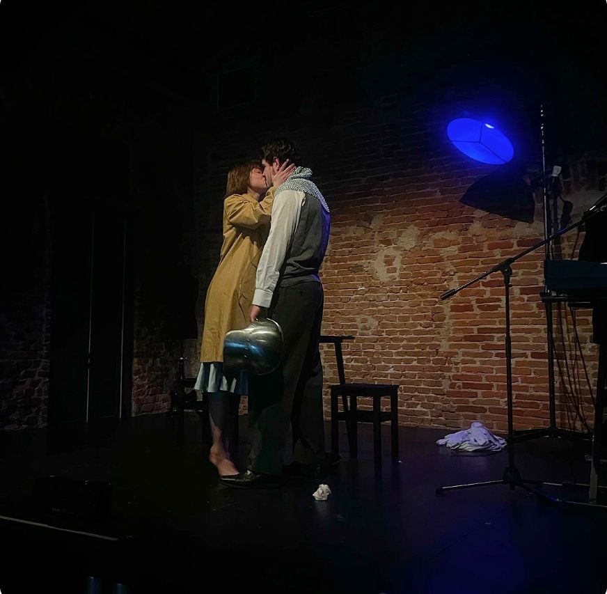 Lo spazio scenico ha pochi elementi essenziali che mettono gli attori nella condizione di lavorare principalmente sulla relazione, sul bisogno estremo che hanno i personaggi di essere visti e riconosciuti. E’ l’incontro imprevisto tra due esseri umani che hanno sperimentato sulla propria pelle la vera solitudine e ora hanno forse una possibilità di rinascita, aiutandosi reciprocamente.