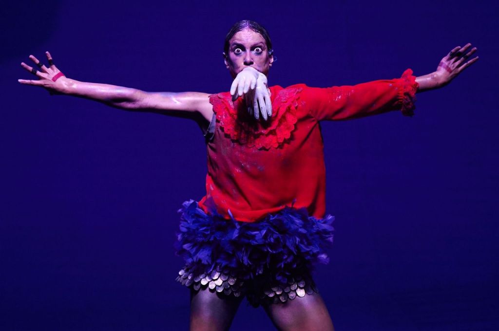 A quattordici anni dalla sua creazione, l’artista sceglie oggi di riprendere il suo lavoro più iconico in una inedita versione live, arricchita dalla presenza in scena di due vulcanici batteristi: con il volto imbronciato, gli occhi sporgenti, la lingua di fuori, ondeggiando in modo goffo, vestita da wrestler o da danzatrice, Monteiro Freitas incarna molteplici creature in un susseguirsi di istantanee che vedono alternarsi in scena un pugile, una marionetta, un’acrobata, un clown, trovando come sempre nel carnevalesco e nella fusione degli opposti il suo tratto distintivo. Una performance straordinaria, fatta di sudore e fatica muscolare, in cui il corpo diventa il campo di battaglia tra diverse creature in lotta.