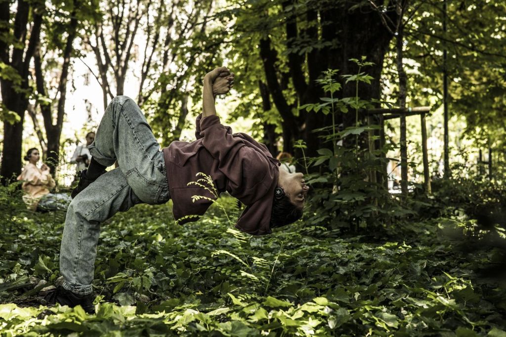 Con la supervisione coreografica dell’artista, quattro giovani danzatrici e danzatori saranno impegnati in tre performance inedite, improvvisazioni e interventi site-specific all’interno di Parco Sempione. Un duo e due assoli, che verranno eseguiti in loop, per un totale di circa 60 minuti di azione complessiva:
