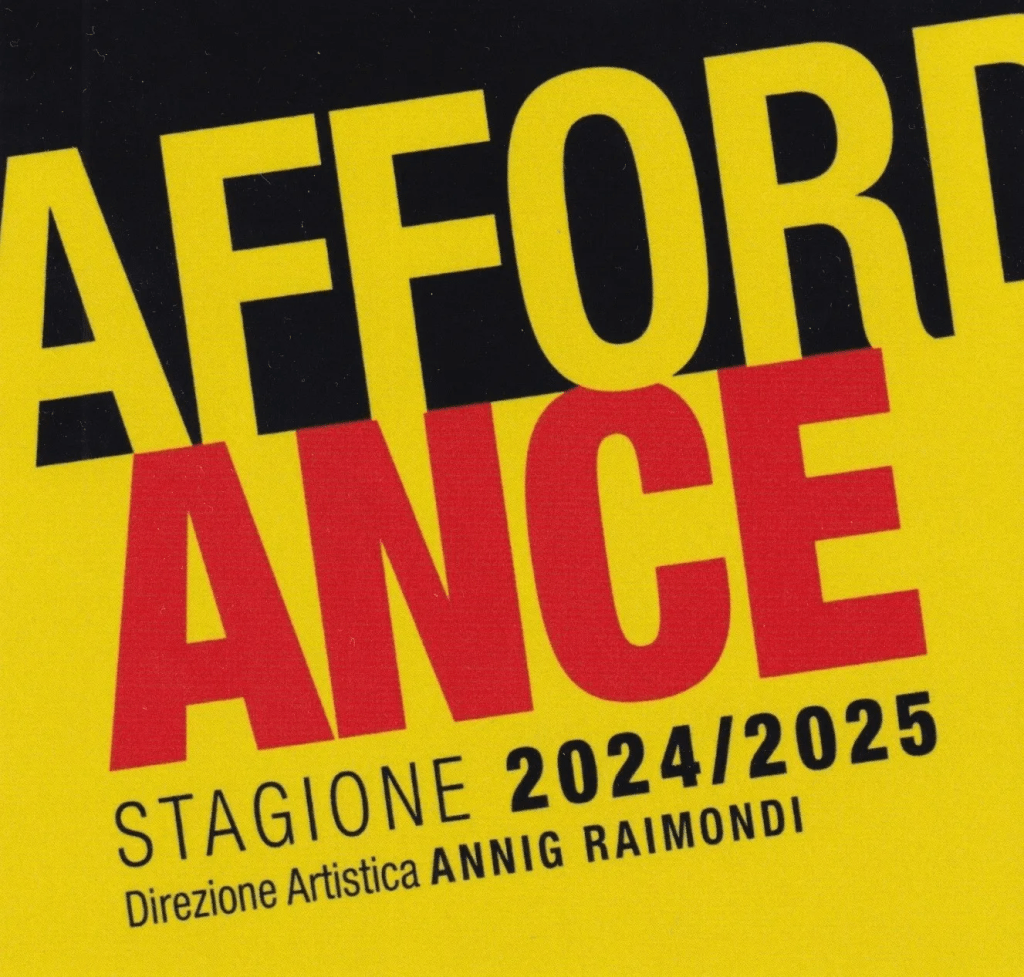 «AFFORDance 2024 si manifesta in tre parole: semplicità, etica e impegno. – spiega la direttrice artistica Annig Raimondi – Il termine affordance (James Gibson anni ’70) indica una “opportunità di azione” per il soggetto-spettatore fornita dall’ambiente, in questo caso, culturale. Il teatro viene definito una delle ‘sopravvivenze’ delle società arcaiche che ancora resistono nella società informatico-tecnologica. Questo cosiddetto ’residuo’ (il teatro, appunto) assieme alle sue affordances, possono essere utili ‘appigli’ per orientarci in un universo di valori che sembra sempre più in disfacimento. Durante la stagione le affordances ci accompagneranno in un viaggio di immersione dentro la modernità liquida e attraverso di loro l’individuo o il gruppo avranno la possibilità̀ di conoscere, crescere e riemergere. Il pubblico deve arrivare a pensare ‘Che cosa ci posso fare con il Teatro?’, e, invitato a un ragionamento inaspettato, ribaltare il punto di vista atteso. Da ottobre 2024 fino a giugno 2025, i progetti tematici, le rassegne, i festival, gli eventi speciali, di cui è costellato il programma di PACTA, saranno affordances che offriranno al pubblico di ogni età occasioni di riflessioni e arricchimento culturale e di divertimento».