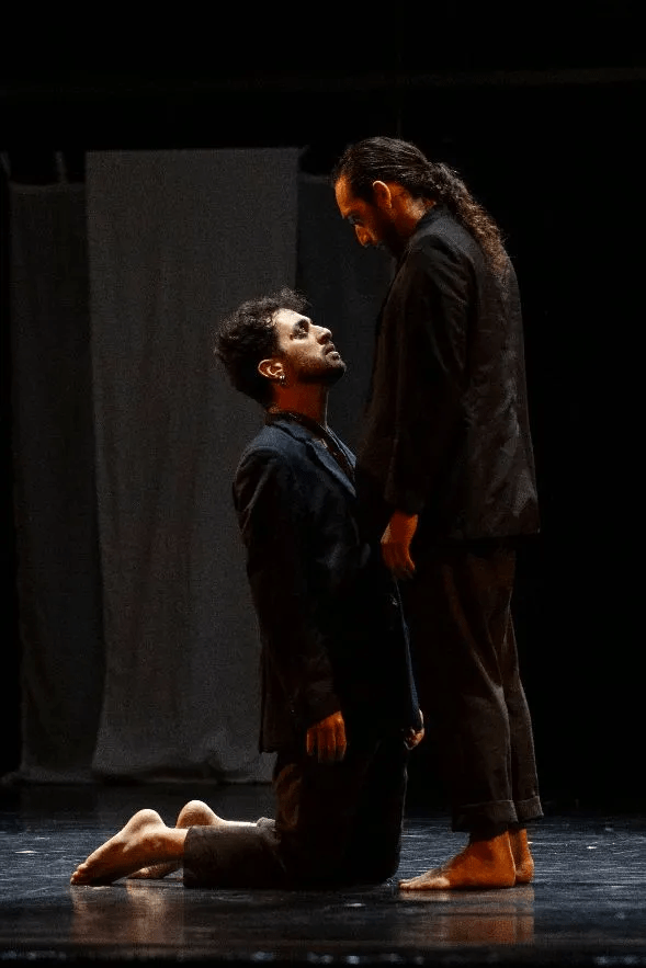 Solo l’interazione tra i corpi e lo spazio, tra i corpi e gli oggetti di scena, ci permette di decodificare il racconto.