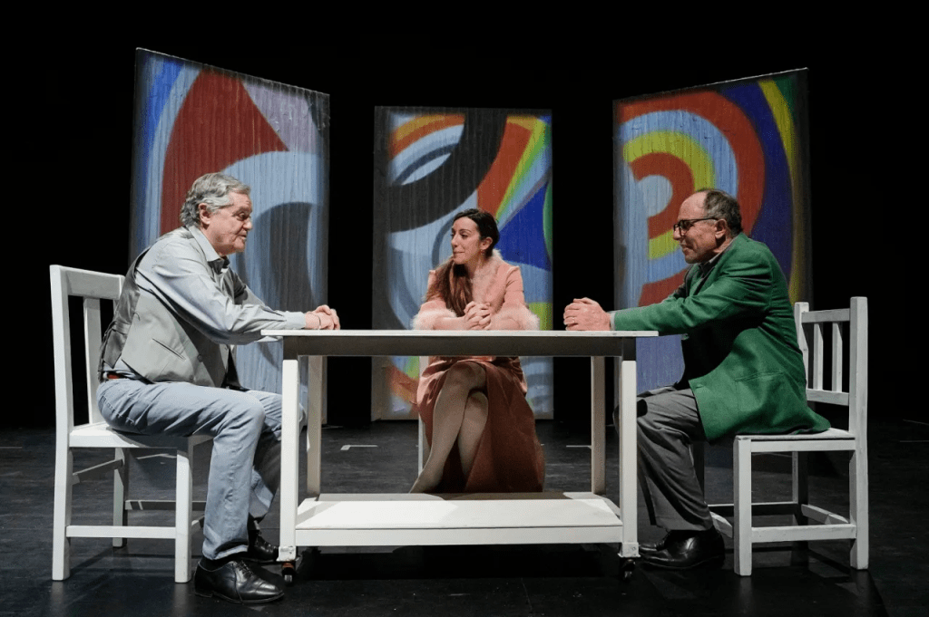 Per questo allestimento abbiamo deciso di mantenere intatta la lingua usata dal grande autore siciliano e la figura del protagonista Vitangelo Moscarda è stata divisa in tre parti. Tre identità distinte della stessa persona che interagiscono costantemente fra loro.