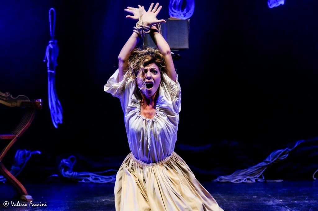 Il prezioso quaderno di Bellezza Orsini, scritto con “mano da strega” nel 1528, gelosamente conservato tra le carte dell’Archivio di stato di Roma, è stato il potente ispiratore prima del libro di Michele Di Sivo, archivista e storico, poi del percorso drammaturgico creato sulle autografe deposizioni del processo per stregoneria da Silvio Giordani, infine dell’ interpretazione al limite del “transfert” di Maria Cristina Gionta (valsale la nomination nella terna del “Premio Le Maschere del Teatro Italiano” 2023 come migliore interprete nella sezione monologhi), della narrazione storico temporale di Luca Negroni e delle suggestioni musicali del cantattore Emiliano Ottaviani. Il manoscritto affiora dal silenzio dei secoli, con una confessione piena e convincente, tra urla e tratti di corda. La verità “ad unghiam” nel profondo di Bellezza è la sete di conoscenza: quante più cose cerchi de imparare, tante più sono quelle che trovi da imparare. “Più vai innanti e più voi ire. Così è la strearia. Più vai innanti e più voi ire, e non te ne contenti.” L’azione “magica” della donna è tutta orientata alla trasmissione della conoscenza, decisamente lontana dall’immagine della strega che veniva pretesa dalla tortura. La “strearia” diventa la capacità di applicare in libertà alcune regole apprese in modo esoterico nel sottile limite tra il bene e il male. La scrittura spigolosa. Un linguaggio asciutto, secco addirittura che ancora sembra vibrare tra le oscure sale della tortura. Un dialetto sabino-medioevale incisivo e comprensibilissimo che ci accompagna anche nelle canzoni che fanno da corollario alla narrazione. Dopo la consegna del quaderno Bellezza Orsini si suicidò in carcere colpendosi alla gola con un chiodo. La sfida suprema le eviterà il fuoco del rogo e probabilmente lo eviterà anche al suo manoscritto che altrimenti sarebbe finito tra le fiamme con lei. Lo spettacolo è un’ora di emozione pura.