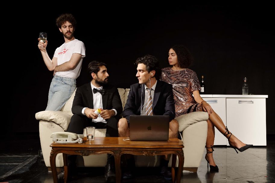 Spesso, riferendosi alla corrente emergenza sanitaria, si sente parlare di pandemia globale. Un’espressione ridondante, dal momento che ogni pandemia (dal greco pandèmios – di tutto il popolo) dovrebbe essere per definizione globale. Un fondo di verità in questo lapsus, tuttavia, c’è. Se confrontata con l’altra grande pandemia dell’età contemporanea e tutt’ora in corso – quella da AIDS – si scorge una differenza sostanziale: il covid-19 influenza tutti, senza distinzione. Se vivi negli anni ‘20 del XXI secolo sul pianeta Terra, la tua vita è in qualche modo trasformata da questa epidemia. Lo stesso non si può dire della sindrome da immunodeficienza acquisita. Un appartamento. Due coppie che lo abitano a vent’anni di distanza. Marcello e David nel 2020, Camilla e Thibaut nel 2000. Dal momento in cui entrano per la prima volta, se non indicato diversamente, i personaggi sono simultaneamente sempre in scena. Non possono, ovviamente, toccarsi o interagire, ma i personaggi, anche quando i riflettori non sono puntati su di loro, continuano a vivere il loro tempo e i gesti, gli sguardi, gli echi di ciò che dicono e fanno, talvolta, possono riverberare attraverso le dimensioni. Diversi elementi scenici (il divano, il frigorifero, il piano cottura…) si trascinano nel corso del tempo: lì erano all’inizio del millennio e lì restano vent’anni dopo. Altri, come il computer di David, anche solo per semplici motivi di anacronismo o di continuità, appartengono soltanto a uno dei due squarci temporali, nonostante nella messa in scena ci possano apparire come sempre presenti.