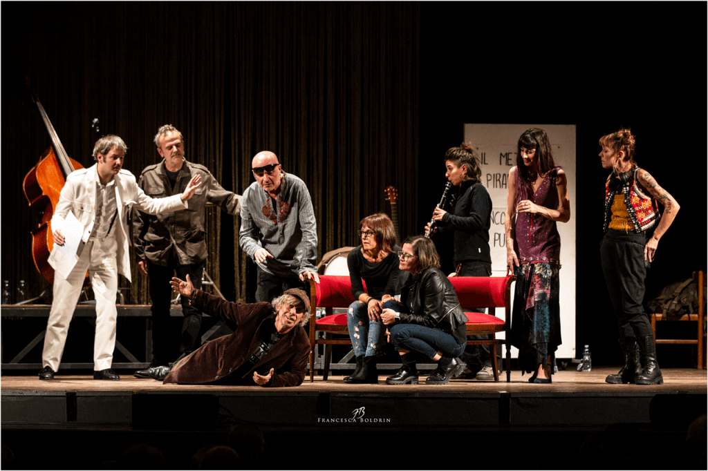 Mi è anche apparso in sogno. Una volta, c’era anche Marta Abba, mi ha parlato di questo testo spiegandomi perché fosse proprio il momento giusto. Ma mi son svegliato per andare in bagno appena prima che me lo svelasse.” Lo svelamento avverrà direttamente sul palco, dal vivo. Ma solo a patto che tutti s’improvvisi all’unisono.