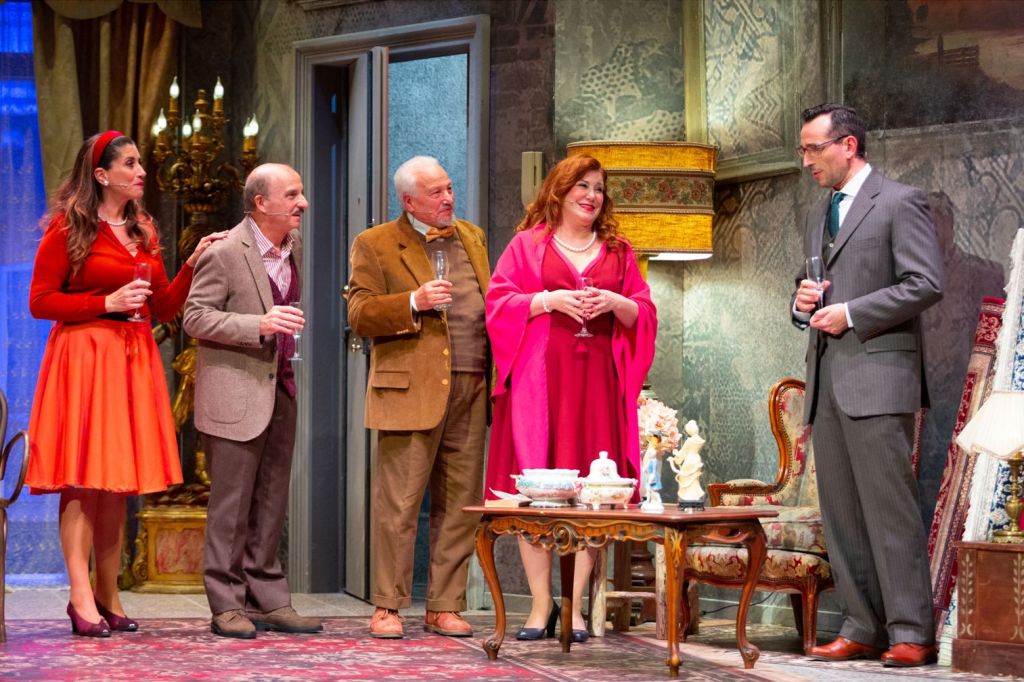 Accanto ai meriti che Carlo Buccirosso possiede nei campi autoriali e di regia occorre aggiungere quelli che riguardano la recitazione che è multiforme, toccando una varietà che spazia tra varie gamme espressive dove il comico si alterna al grottesco e al mesto. Dotato di generosità non si sottrae a offrire ampio spazio ai componenti della Compagnia prestandosi a fare anche da spalla in alcune occasioni topiche. Gli artisti che lavorano con lui sono di ottimo livello professionale e si intuisce che sono stati scelti con cura perché ognuno è ottimamente inquadrato nella parte che sostiene. Naturalmente, e questo dipende anche dai ruoli sostenuti che possono richiedere una maggiore presenza in scena, ci sono alcuni che meritano di essere citati, come Massimo Andrei, (capace di fare della gestualità il suo punto di forza), Elvira Zingone (che dà un tocco di vivace napoletanità al suo personaggio), Davide Marotta (in una recitazione scoppiettante tra le più divertenti della commedia), Matteo Tugnoli (ottimo caratterista nel ruolo di un dottore dagli atteggiamenti “ingessati”), Stefania De Francesco (brava anche nel canto: è lei che esegue dal vivo all’inizio del secondo tempo la famosa “Tace il labbro” da “La vedova allegra” di Lehar).