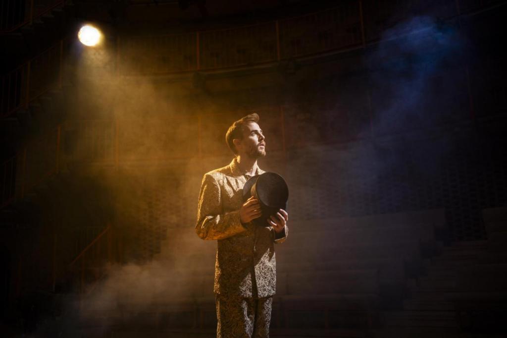 Entra in scena un po’ affannato in tenuta da esploratore con un enorme zaino sulle spalle e la prima cosa che chiede alle persone convenute è se tra loro è presente un paleontologo. Inizia così il suo nuovo spettacolo che ha la novità di essere un musical o, meglio, un omaggio a quel genere anche se poi dal musical prende solo alcune caratteristiche e lui le vive con i suoi gesti canonici come i movimenti dei piedi che vogliono essere una danza ma che poi sono qualcosa di più e questo lo si scoprirà nel corso della rappresentazione quando diverranno veri e propri scatti nervosi quasi inconsapevoli. E poi c’è il canto con la voce che varia tra diverse tonalità e anche questa è fatta di note che si formulano improvvisamente e raggiungono alte quote. Arrivano all’improvviso, sono brevi, come l’inizio di arie musicali subito interrotte perché non ritenute opportune oppure sono reminiscenze di suoni che non appartengono più al presente. L’esploratore D’Agostin inizia a raccontare di quando milioni di anni fa i dinosauri si estinsero a causa della caduta di un enorme meteorite. Sembra quasi di assistere a una lezione di paleontologia mentre estrae dallo zaino pochi elementi che formeranno un piccolo tavolo, un basso sgabello, una sedia. C’è una persona a essere protagonista di quanto avverrà, tralascia di dire il suo nome, lo chiama “Lui” ma è facile intendere chi sia quando lo descrive come un uomo che ha tre nei su una guancia. Così, quella che voleva essere una sorta di lezione storica, diventa una vera e propria trama per un musical dove troveranno posto i vari codici di quel genere artistico sia pure in maniera del tutto inedita in un connubio totale tra arte e scienza.