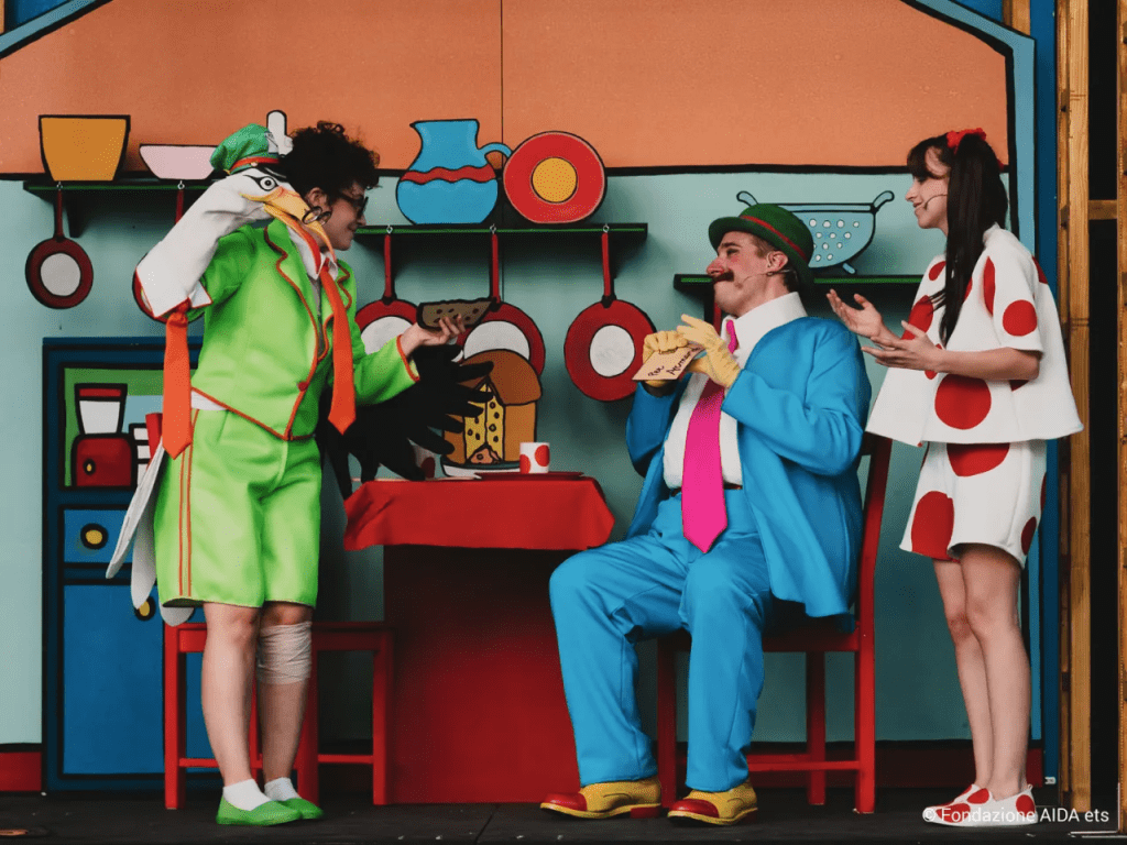 Lo spettacolo è diretto da Enzo d’Alò, uno dei più importanti registi europei di cinema d’animazione, che torna a collaborare con Altan dopo la serie animata dedicata alla Pimpa. Dall’incontro tra due autori d’eccezione nasce un musical originale e poetico, che celebra il connubio tra il mondo dell’infanzia e la magia senza tempo del teatro. Un teatro fatto di parole, pupazzi, travestimenti e, soprattutto, musica e gioco. La musica, infatti, è il cuore pulsante di questo spettacolo: accompagna ogni trasformazione scenica, dà ritmo alle emozioni e voce all’immaginazione. Le canzoni originali composte da Eleonora Beddini non solo impreziosiscono la narrazione, ma costruiscono un vero e proprio linguaggio musicale che guida il pubblico in un viaggio sonoro attraverso stili diversi, evocazioni poetiche.