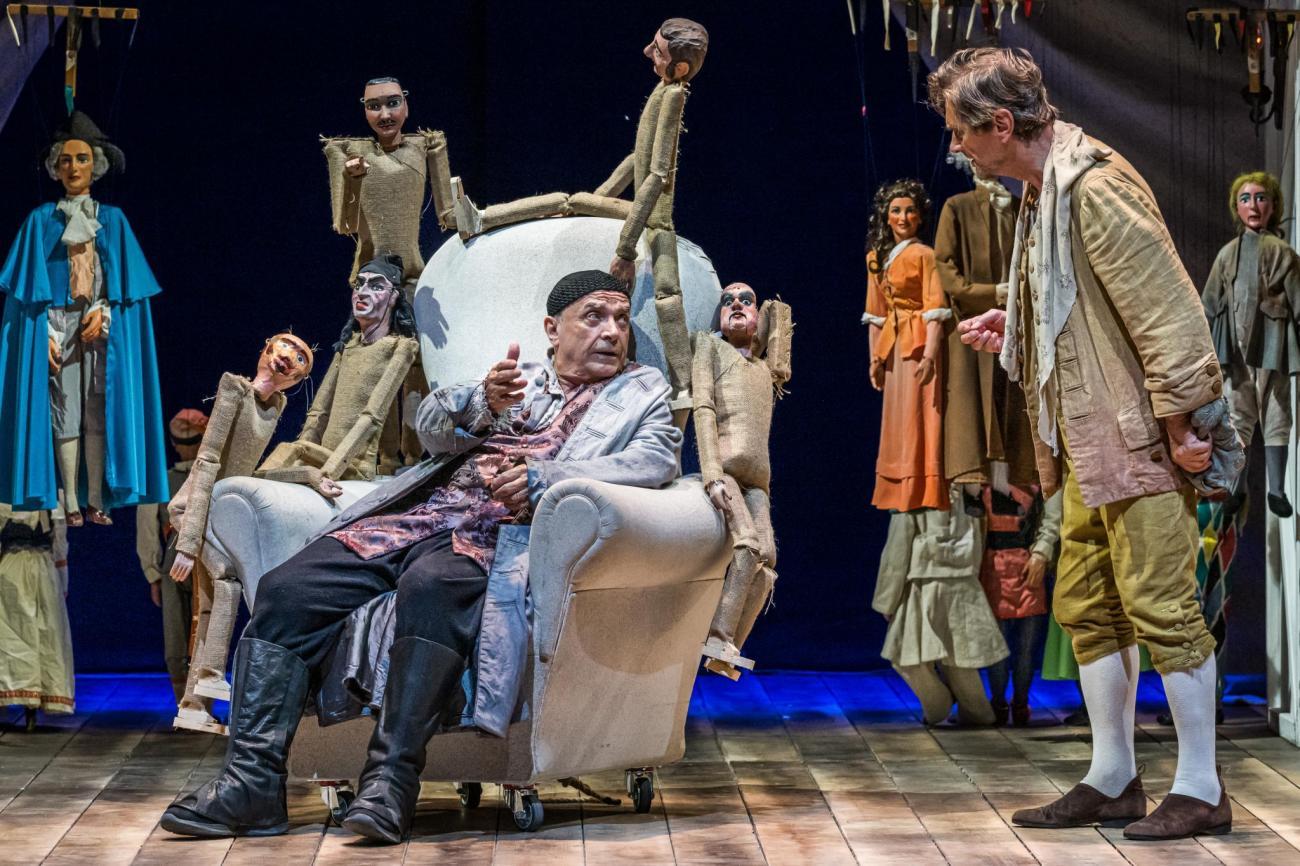 La scelta registica di Paolo Valerio è quella di totale rispetto filogico del testo di Goldoni al quale ha aggiunto quella che è l’idea più originale della messa in scena: l’uso delle marionette presenti in scena ben visibili a volte in posizione di riposo quasi a rappresentare un pubblico silente che osserva le gesta degli umani, altre volte, e qui ne ravvisiamo la parte più consistente, mentre vengono manovrate e gestite vocalmente dagli stessi personaggi a mostrare una sorta di alter ego significante del proprio io nascosto. L’unico a non fare uso di marionette di legno è Sior Todero perché lui ha la pretesa e il potere di manovrare le persone reali.