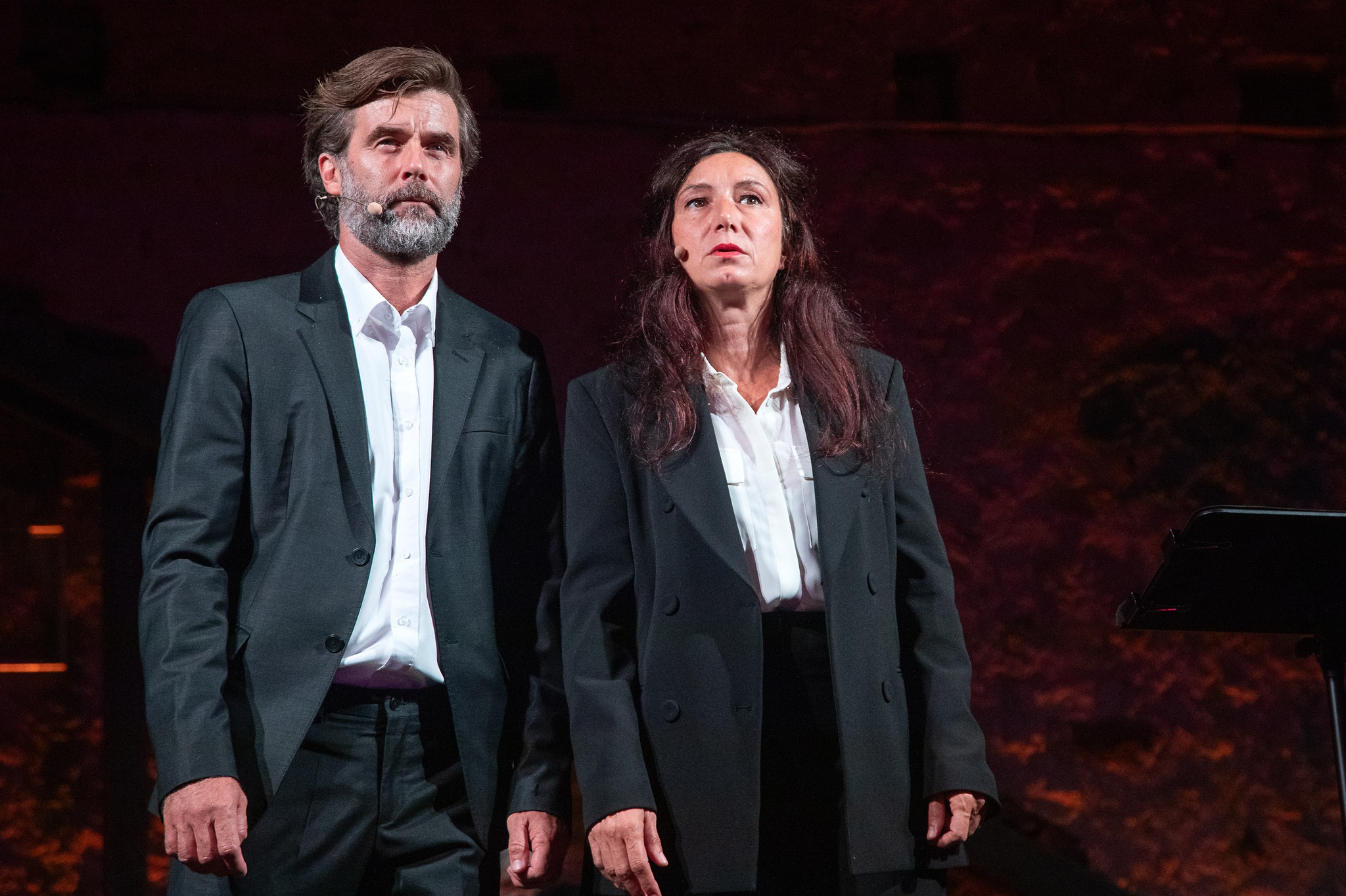 Da quelle tragedie sono trascorsi dieci anni, il mondo di oggi è ancora dilaniato dalle guerre e dalla paura, anche per questo apprezziamo il lavoro da cronista giudiziario di Carrère. E’ esemplare per la chiarezza e la completezza delle informazioni raccolte e messe in pagina, ma lo sguardo dell’autore mette al centro della sua inquadratura prima di tutto la persona, cercando di rimanere fuori da pregiudizi o soluzioni, aiutandoci a ripercorrere alcune delle contraddizioni del nostro tempo e forse dell’uomo stesso. Il coraggio di Carrère contro la viltà criminale dei terroristi si ritrova sul palco, con due interpreti che sanno dare voce a chi c’era e a chi non c’è più.