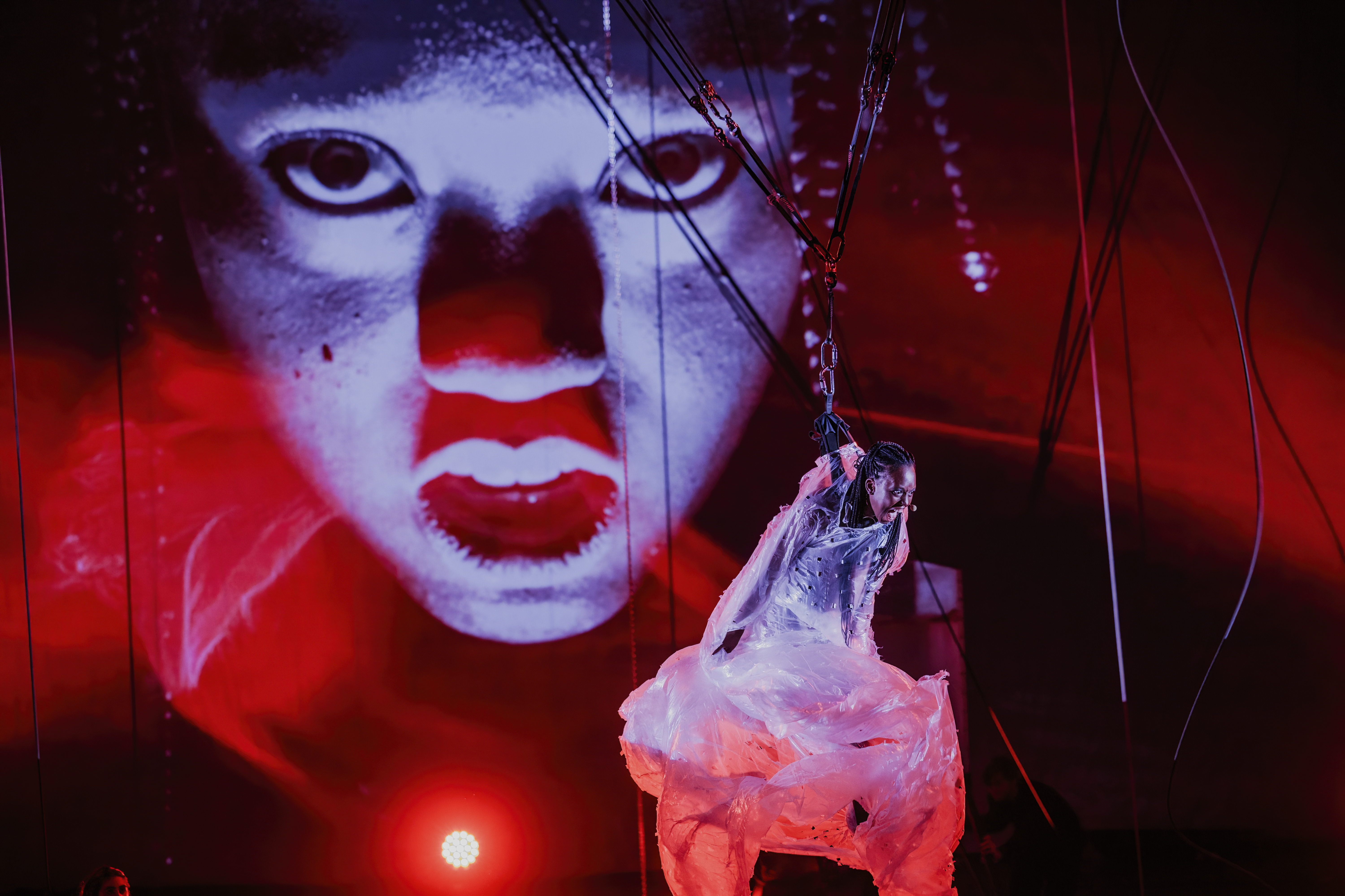 Con “SONS: Ser o No Ser”, La Fura dels Baus riflette sul significato stesso dell’esistenza oltre che sulla scelta di “essere” in un’epoca dominata dall’immagine e dalla passività. In un mondo in cui lo schermo sostituisce la realtà, SONS indaga il rapporto tra corpo e immagine, tra materia e virtuale, denunciando il potere manipolatorio dei media e riaffermando il valore dell’esperienza diretta e del contatto umano. In un susseguirsi di visioni che oscillano tra il sogno e il distopico, il pubblico assiste a scene di forte impatto: Ofelia che emerge da un sacco della spazzatura, uomini che attraversano la sala con taniche di plastica, Amleto che si risveglia da una bara. È un mondo sospeso, dove la materia e il virtuale si fondono fino a confondere lo sguardo.