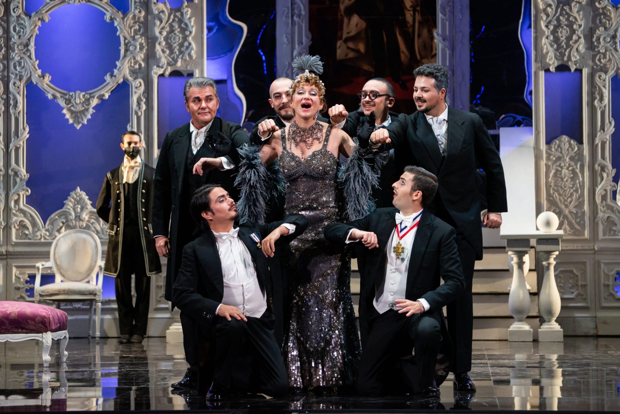 Quando si affronta il “mostro sacro” delle Operette, emergono una serie di riflessioni e opportunità. Chi non conosce Vedova? Chi non l’ha vista almeno una volta? Non solo: essendo così popolare, ogni anno troviamo questo titolo nelle programmazioni dei più importanti Teatri, così come nei più piccoli, fino ad arrivare a spazi che teatri non sono. E così troviamo gli allestimenti più sfarzosi, con cantanti ed attori di altissimo livello, fino a trovare allestimenti approssimativi con compagini pseudo amatoriali, addirittura con basi musicali registrate. Dopo decenni di frequentazione di questo titolo, il direttore d’orchestra ed il regista si chiedono quale strada intraprendere per proporre al pubblico l’ennesimo nuovo allestimento di Vedova Allegra. Avendone viste davvero di tutti i colori, la scelta è in fondo estremamente semplice! È sufficiente riguardare la partitura e leggere qualche lettera dell’autore.La partitura chiede cantanti di assoluto valore, un’orchestra piena e versatile, un coro ed un corpo di ballo all’altezza. Lehàr poi ha più volte rimarcato che l’artista d’operetta deve essere “più bravo” del cantante d’opera, in quanto la voce è fondamentale ma non sufficiente, così come l’attore non può limitarsi a recitare, dovendo anche cantare e danzare. Il copione poi, sempre attualissimo, ha solo bisogno di una spolverata leggera, essendo passati 120 anni dalla sua stesura. Infine il vero segreto resta il lavoro. Tanto lavoro per far sì che la Compagnia sia davvero affiatata e disinvolta. Solo in questo modo gli artisti sono i primi a divertirsi, offrendo al pubblico uno spettacolo capace di farci ancora sognare, almeno per un paio d’ore…. (Stefano Giaroli e Alessandro Brachetti)