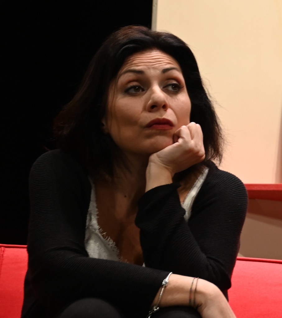 I quattro attori delle due Compagnie riunite felicemente per questa occasione non si sono risparmiati nei difficili ruoli dei quattro genitori con una recitazione efficace che la regia ha evidenziando conferendo alla pièce quel ritmo che nel procedere dell’azione diventa sempre più incalzante. Marco Tosi era bene inquadrato nel personaggio di Michel che si intuisce essere persona pacifica, vittima delle circostanze e delle persone come la moglie e la madre le cui volontà è meglio assecondare. La sua presenza scenica è stata resa al meglio nelle occasioni in cui, sforzando l’indolenza propria del suo carattere, riusciva a tenere testa a moglie e agli ospiti non esitando ad arrivare agli insulti. Nadia Bruno è stata il tipo di moglie che, pur essendo legata a un’immagine di cuoca e casalinga perfetta, desidera brillare per saggezza e cultura. Le riviste d’arte e i cataloghi tanto amati che, anziché essere riposti in una libreria, sono appoggiate su un tavolo assumendo quasi una funzione espositrice, connotano una persona dagli atteggiamenti radical chic che nasconde in realtà un’estrazione borghese. Grande professionista dalla lunga e molteplice attività artistica con un linguaggio variegato a seconda dei momenti, ha raggiunto il massimo dell’espressività grazie agli sguardi penetranti che sapevano indicare di volta in volta incredulità, disgusto, apprensione, rabbia. È appena il caso di segnalare che, a causa di un infortunio subìto, ha recitato aiutandosi per tutta la durata dello spettacolo con un bastone e questo le fa molto onore. Danilo Lamperti, già da me ammirato in alcuni altri suoi spettacoli, ha tenuto fede alla sua bravura come interprete di ottima caratura: il suo Alain Reille è antipatico come uno si aspetta che sia, tanto che non si può fare a meno di “parteggiare” per la moglie quando riesce a inibirgli l’uso del telefono (e qui non aggiungo altro per evitare spoiler). Il personaggio di Annette (Adriana Bongervino) che all’inizio sembrava essere la più disponibile a risolvere la faccenda che aveva visto suo figlio colpevole ha preso quota con piglio deciso durante l’evoluzione della vicenda quando si dispiaceva per la sorte del criceto abbandonato finendo per rimproverare Michel o nel momento in cui dichiarava che anche l’insulto è indice di violenza provocando la reazione negativa di Véroniqe.